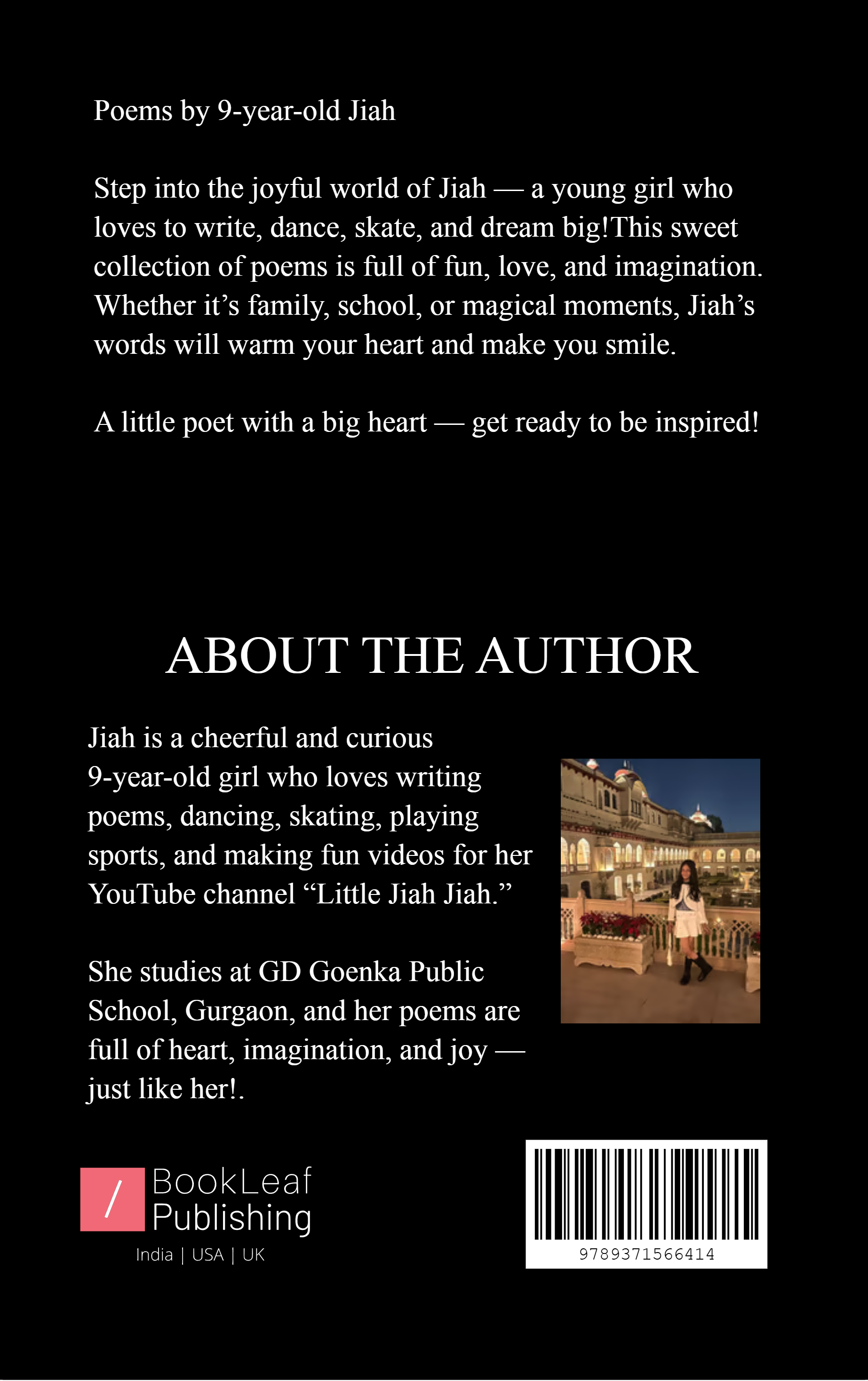 Jiah shares her world — from skating and school fun to family love and big dreams. Each poem sparkles with imagination and innocence, making this book a joyful read for kids and grown-ups alike. Whether you’re looking to smile, laugh, or remember your own childhood dreams, this book has something special for everyone.