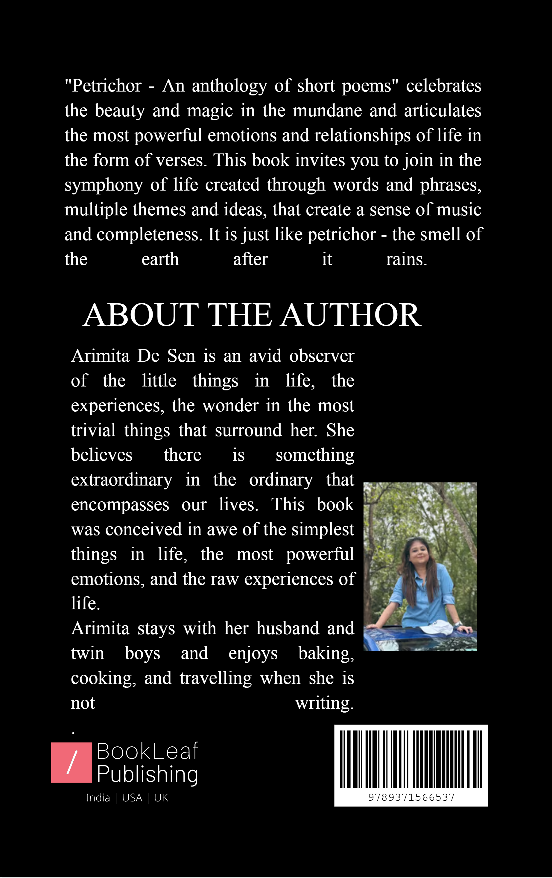 "Petrichor - An anthology of short poems" celebrates the beauty and magic in the mundane and articulates the most powerful emotions and relationships of life in the form of verses. This book invites you to join in the symphony of life created through words and phrases, multiple themes and ideas, that create a sense of music and completeness. It is just like petrichor - the smell of the earth after it rains.