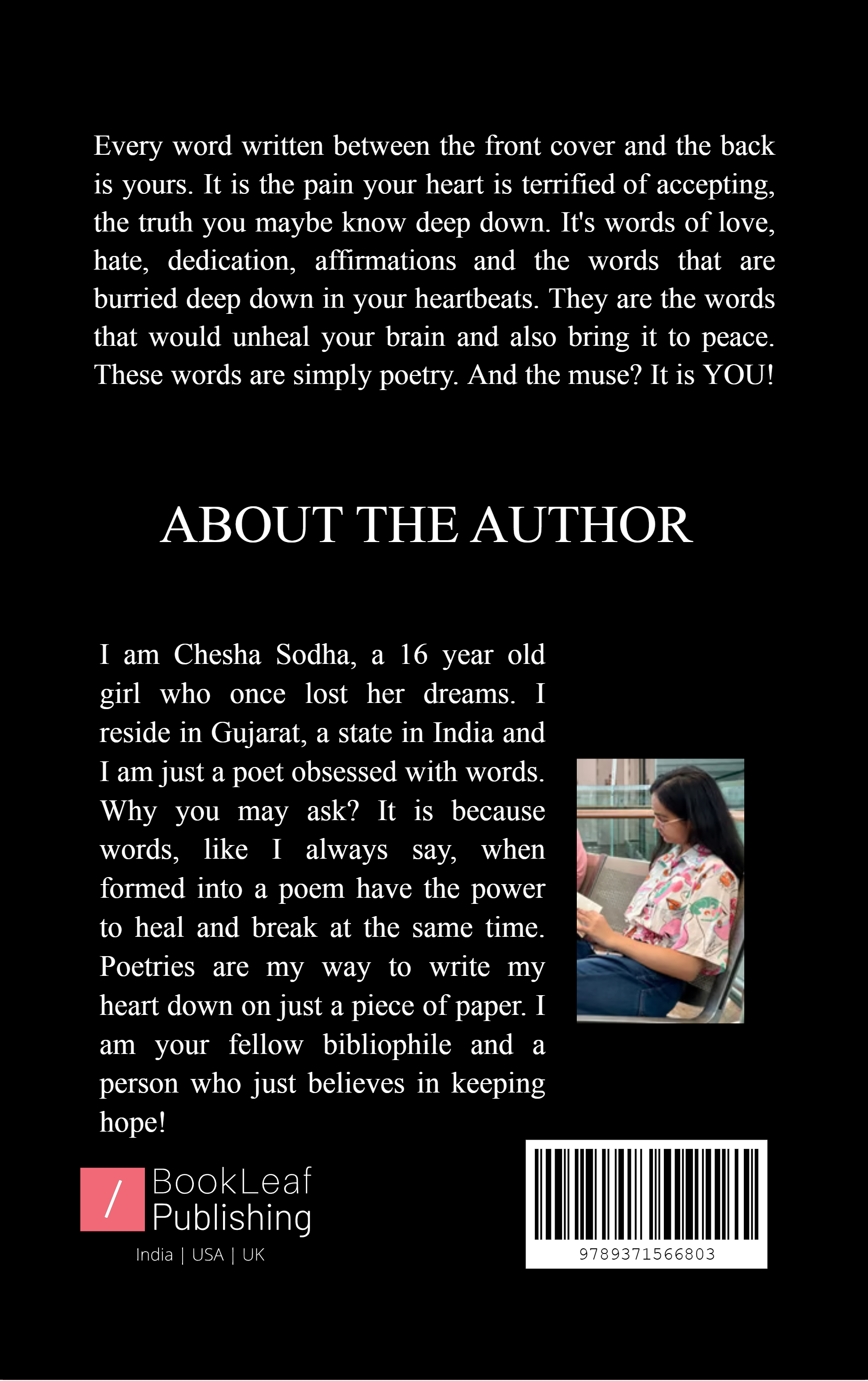 This book is a reflection of one's heart, every poem is etched with the beats of many emotions. These poems scream truth. hidden words, dedications, affirmations and desires. The poems are in English and Hindi.