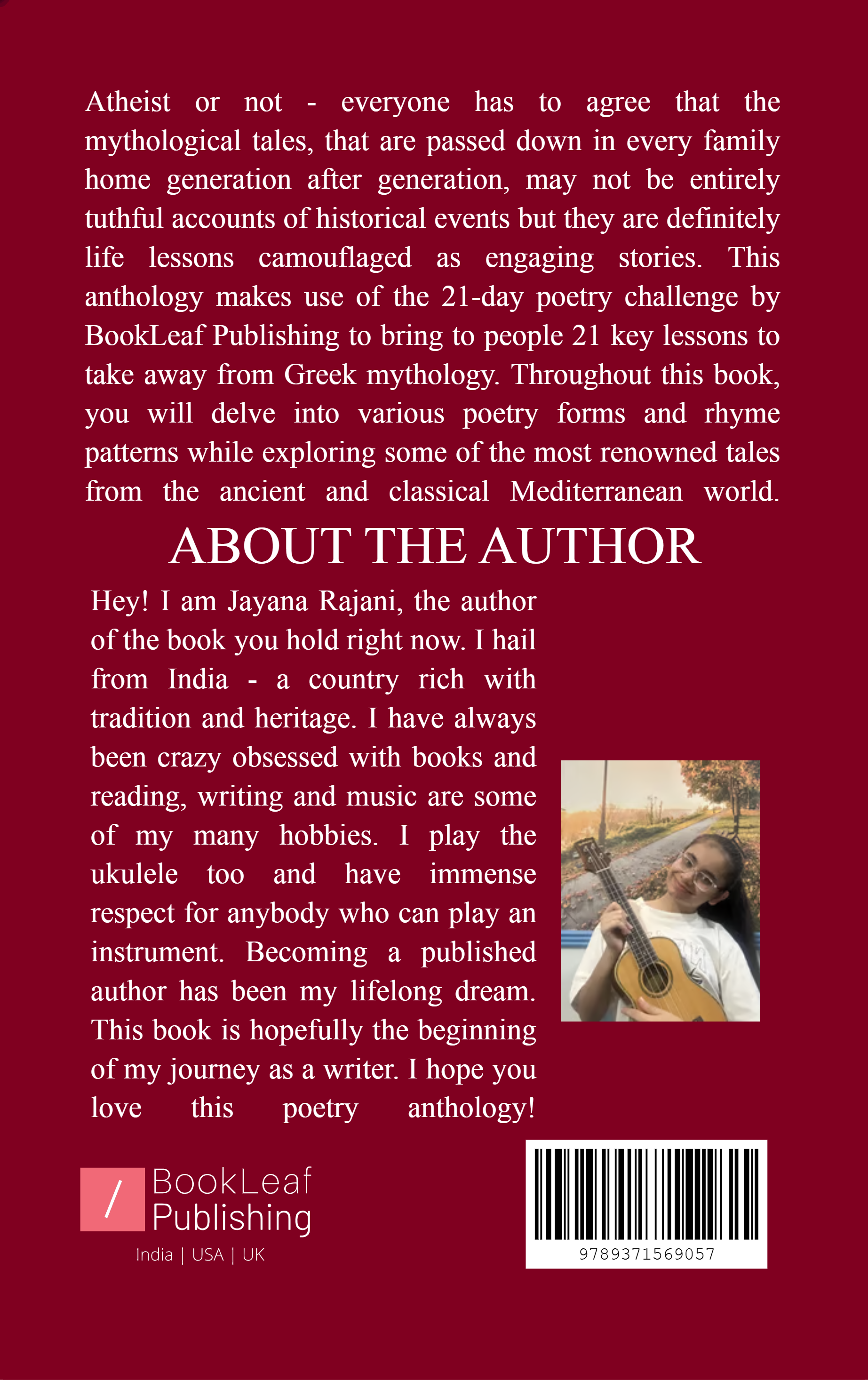 This book, written for the 21-day Writing Challenge by BookLeaf, is a poetry anthology. The consistently followed theme throughout the anthology is Greek Mythology as every poem focuses on a particular renowned tale and what it can teach us about our own lives. For example, Medusa's story sheds light on societal injustice while Midas teaches us about the bitter consequences of greed and so on. The writer tries to make use of multiple traditional poetry types including the Rondeau Prime, Petrarchan Sonnet, Constanza etc.