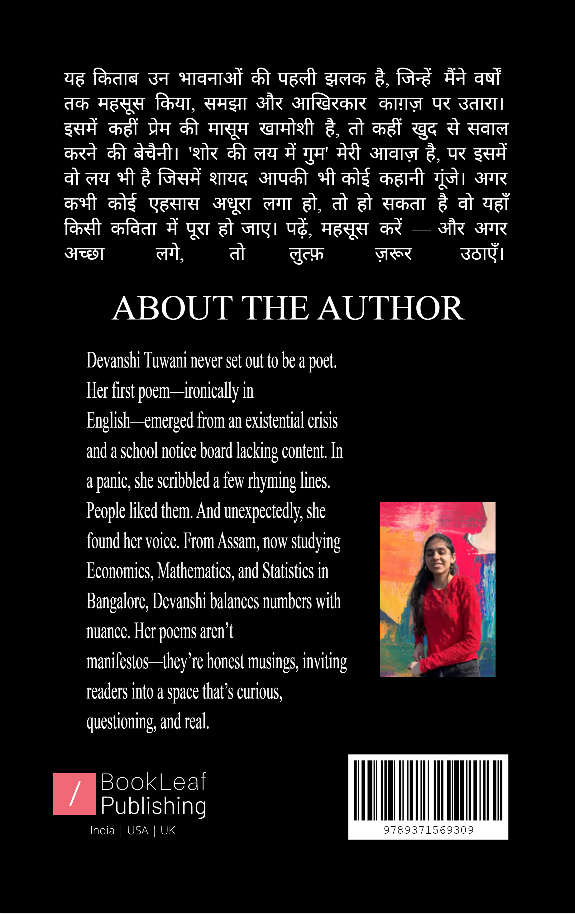 यह किताब उन भावनाओं की पहली झलक है, जिन्हें मैंने वर्षों तक महसूस किया, समझा और आखिरकार काग़ज़ पर उतारा। इसमें कहीं प्रेम की मासूम खामोशी है, तो कहीं खुद से सवाल करने की बेचैनी। 'शोर की लय में गुम' मेरी आवाज़ है, पर इसमें वो लय भी है जिसमें शायद आपकी भी कोई कहानी गूंजे। अगर कभी कोई एहसास अधूरा लगा हो, तो हो सकता है वो यहाँ किसी कविता में पूरा हो जाए। पढ़ें, महसूस करें — और अगर अच्छा लगे, तो लुत्फ़ ज़रूर उठाएँ।