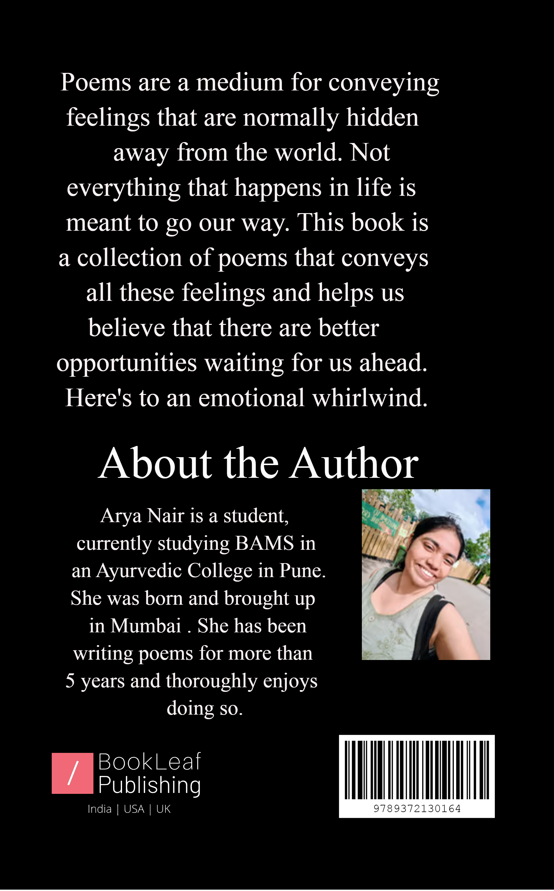 Poems are a medium for conveying feelings that are normally hidden away from the world. Not everything that happens in life is meant to go our way. This book is a collection of poems that convey all these feelings and help us believe that there are better opportunities waiting for us ahead. Here's to an emotional whirlwind.