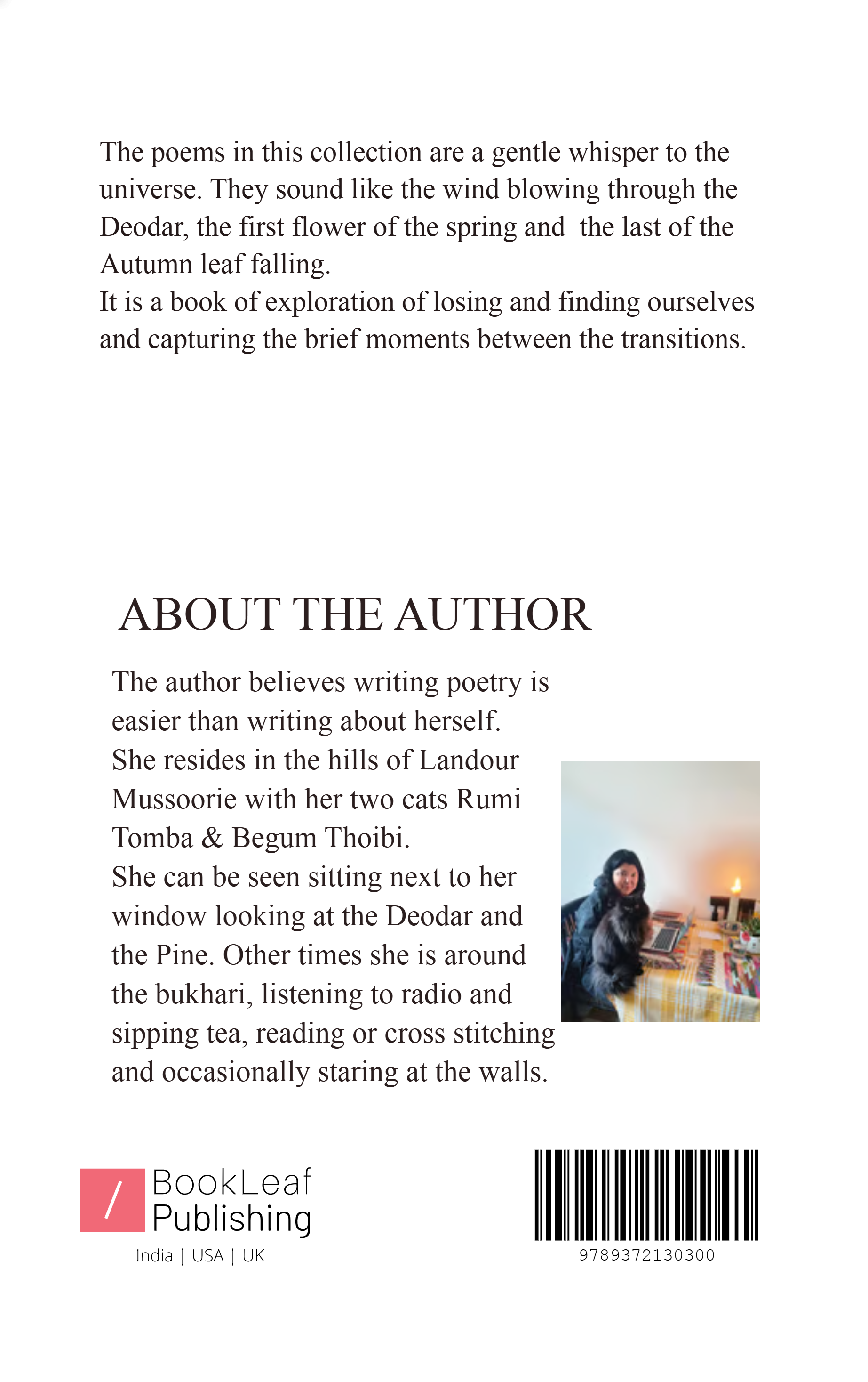 The poems in this collection are a gentle whisper to the universe. They sound like the wind blowing through the Deodar, the first flower of the spring and the last of the Autumn leaf falling.