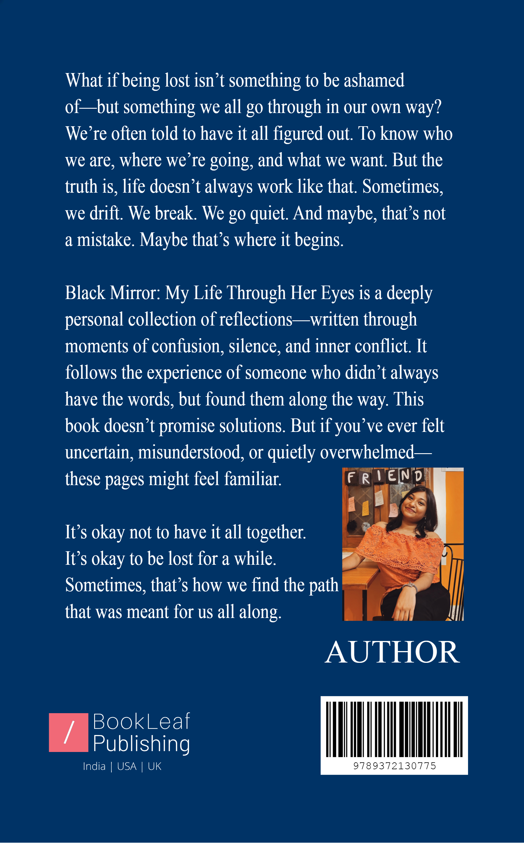 Black Mirror: My Life Through Her Eyes is a journey through confusion, self-discovery, and the pain within us we rarely speak of. Through reflections into reality and poetic fragments, this book explores what it means to break, to rebuild, and to grow into someone you never thought could exist.