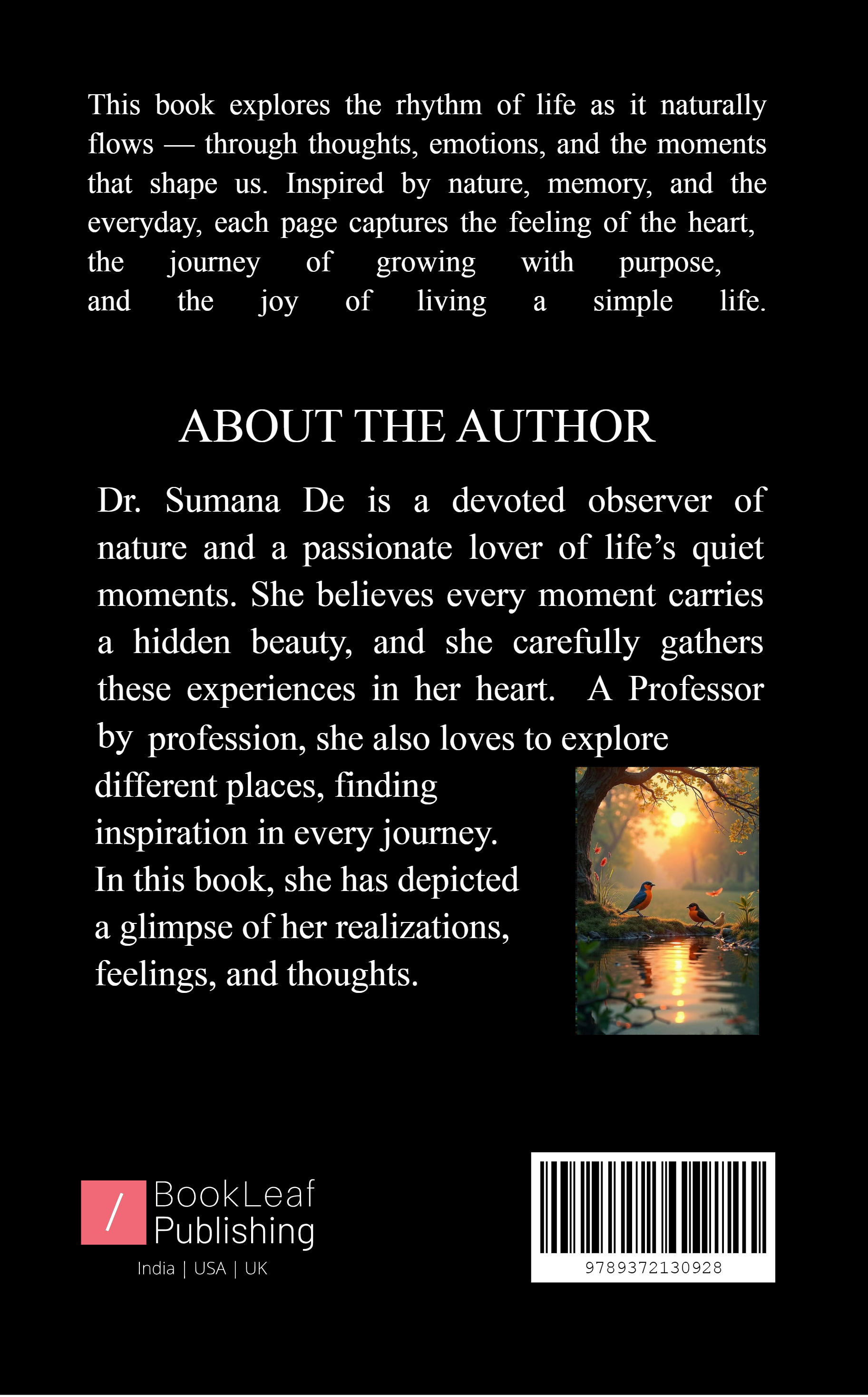 This book explores the rhythm of life as it naturally flows — through thoughts, emotions, and the moments that shape us. Inspired by nature, memory, and the everyday, each page captures the feeling of the heart,the journey of growing with purpose, and the joy of living a simple life
