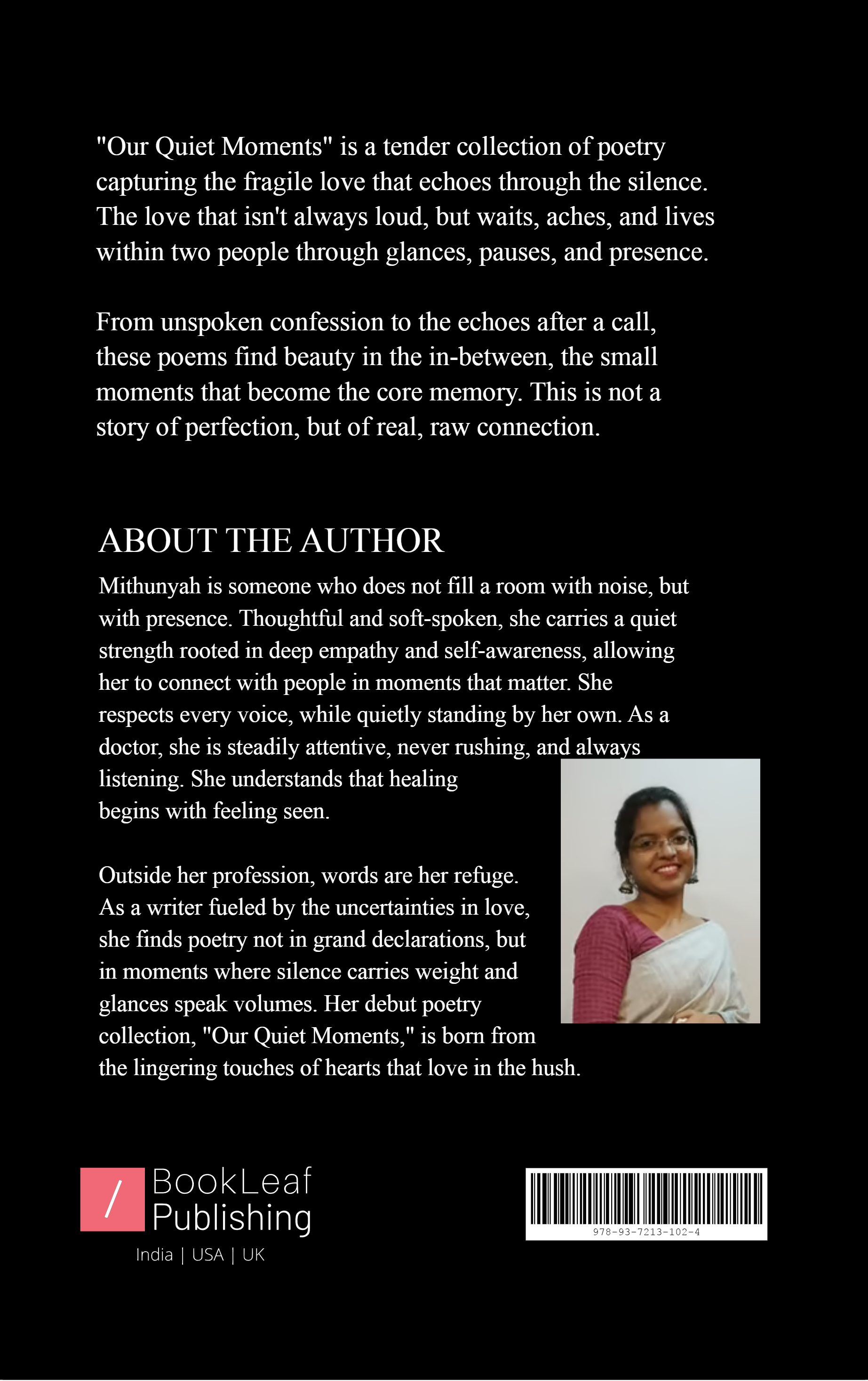 "Our Quiet Moments" unravels a journey of love through a version of intimacy that doesn't always need touch. Each poem captures fleeting moments— unplanned, raw and gentle.