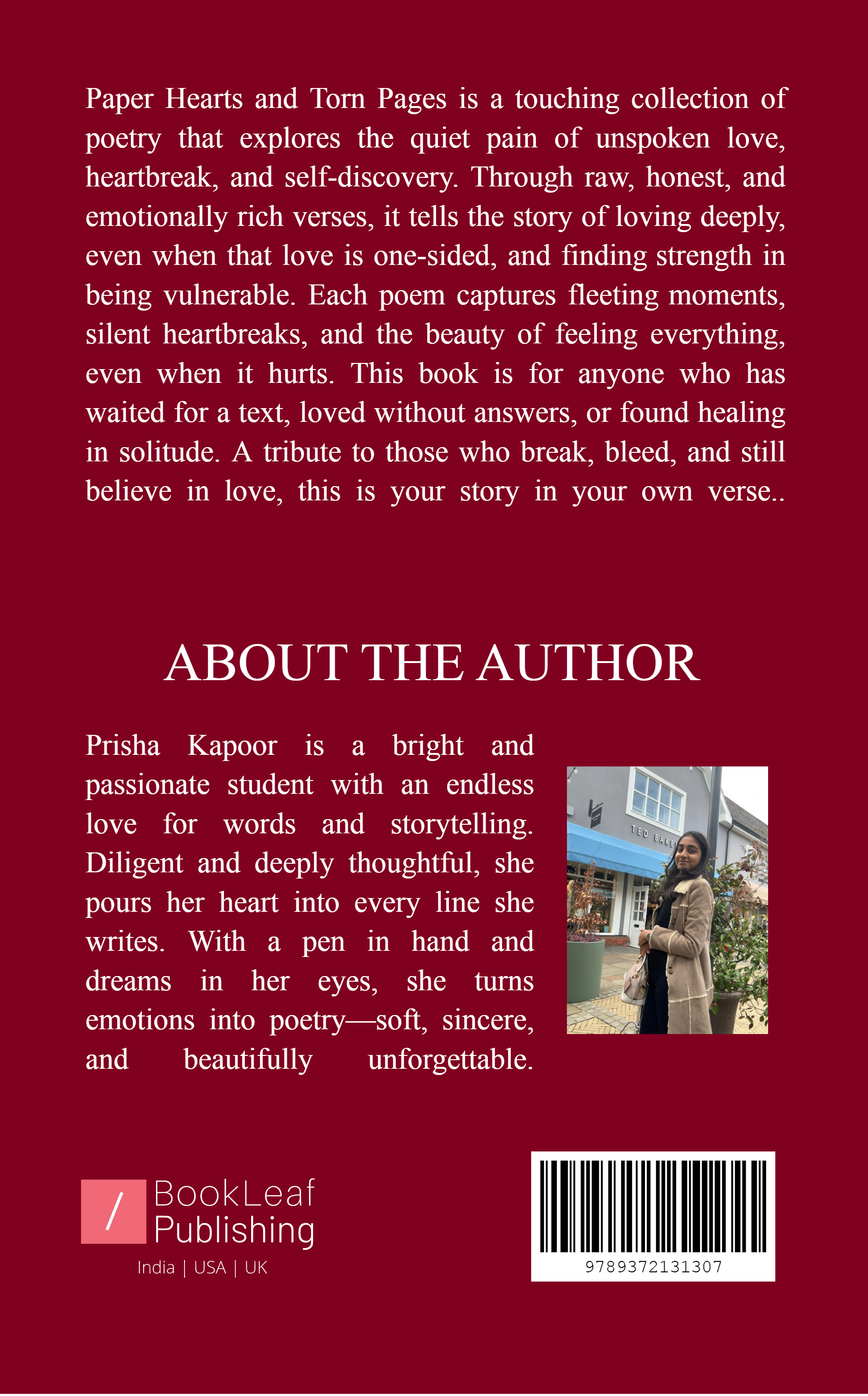 Paper Hearts and Torn Pages is a soulful collection of poetry that captures the fragile beauty of loving, breaking, and surviving. Each poem holds the weight of unsent texts, late-night tears, and memories that linger like shadows. It’s for anyone who’s ever fallen too hard, waited too long, or felt too much. From quiet heartbreaks to silent strength, this book traces the path from pain to peace with honesty and grace. Raw yet soft, messy yet meaningful—Paper Hearts and Torn Pages is a tribute to the ones who feel deeply and love even when the words run out.