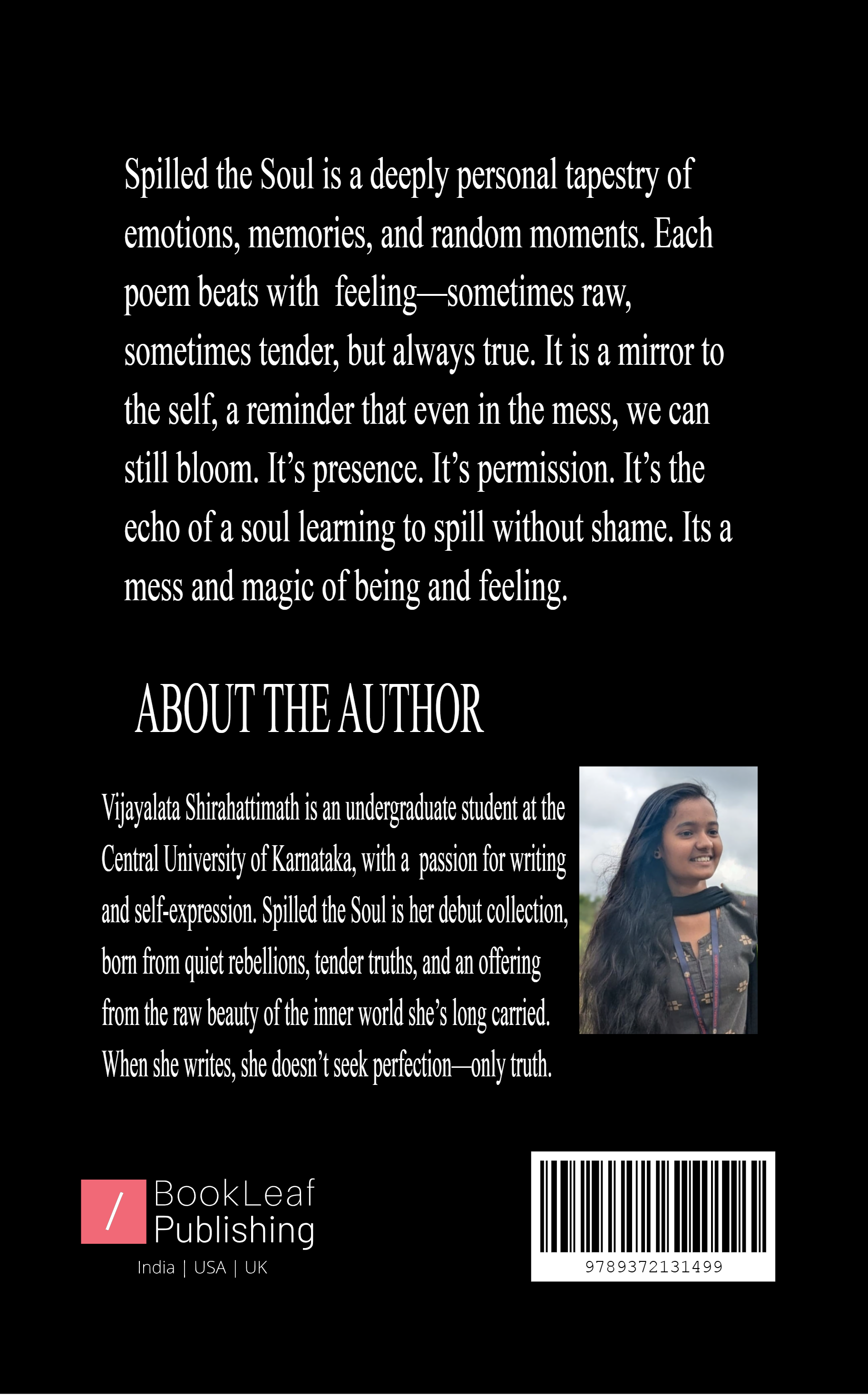 Spilled the Soul is a deeply personal tapestry of feelings, emotions, memories, and random moments. Each poem beats with feeling—sometimes raw, sometimes tender, but always true. It is a mirror to the self, a reminder that even in the mess, we can still bloom. It’s presence. It’s permission. It’s the echo of a soul learning to spill without shame.