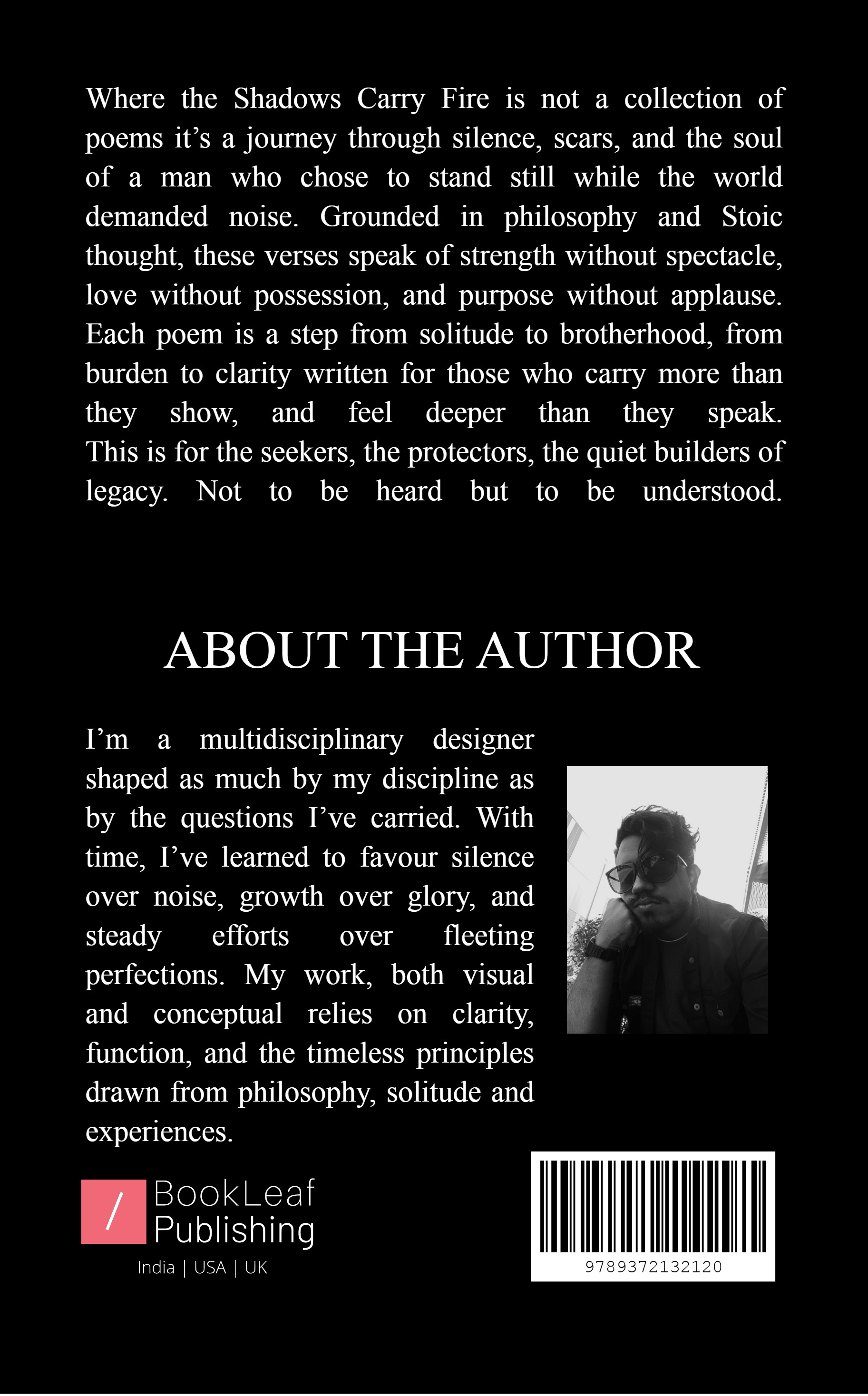 Where the Shadows Carry Fire is a quietly moving collection that sits beside readers who walk through silence, struggle and a quest for purpose. Each poem, grounded in stoic thought, ponders strength, solitude, brotherhood, discipline and the marks we leave behind. Drawing on Greek wisdom and calm self-reflection, the book cares less about loud triumphs and more about clear intent and gentle becoming. Crafted with restraint, the lines are meant for those who carry burdens the world rarely sees, offering verses not to impress but to guide.