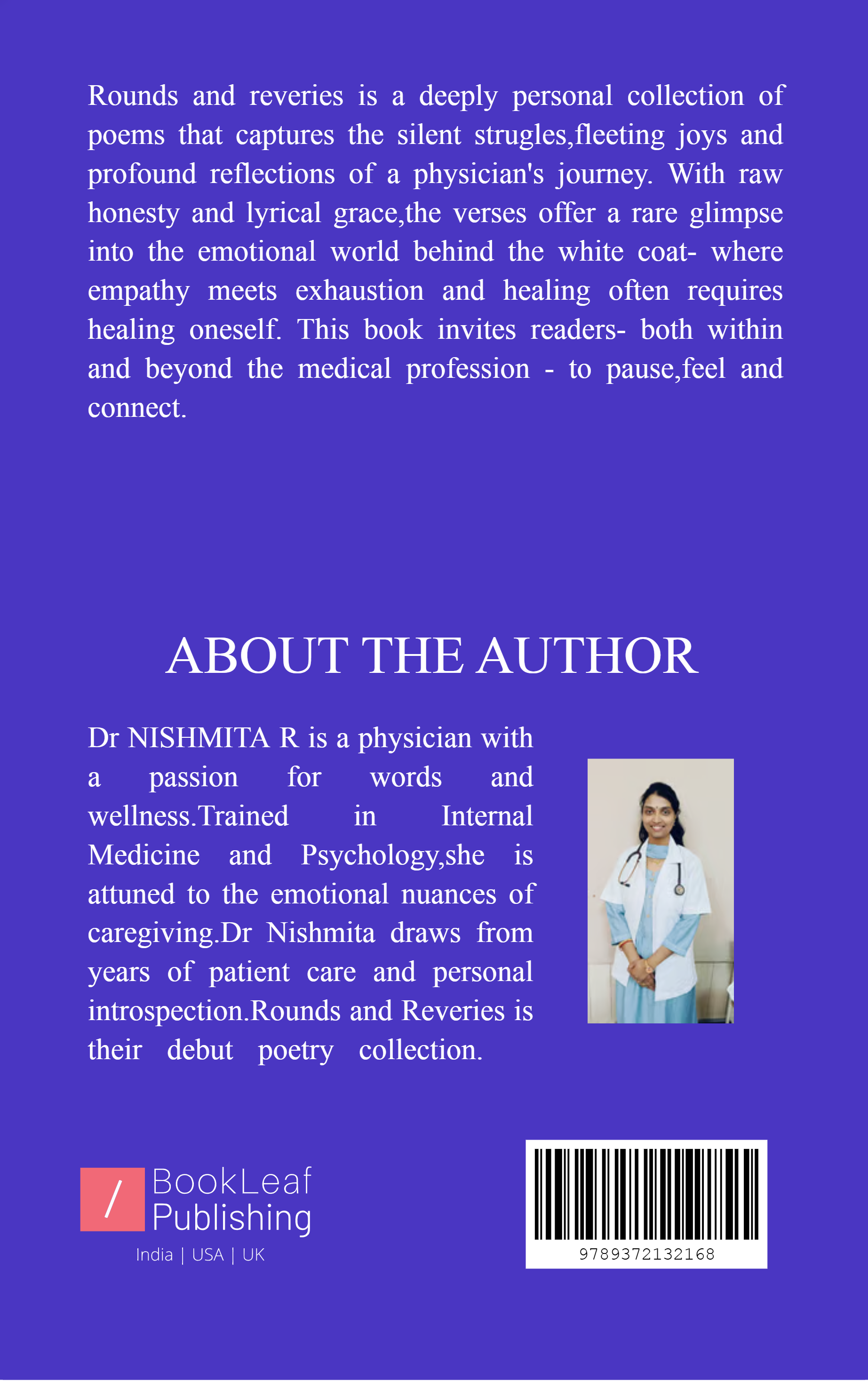 Rounds and Reveries is a deeply personal collection of poems that captures the silent struggles, fleeting joys, and profound reflections of a physician's journey. With raw honesty and lyrical grace, the verses offer a rare glimpse into the emotional world behind the white coat—where empathy meets exhaustion, and healing others often requires healing oneself. This book invites readers—both within and beyond the medical profession—to pause, feel, and connect.