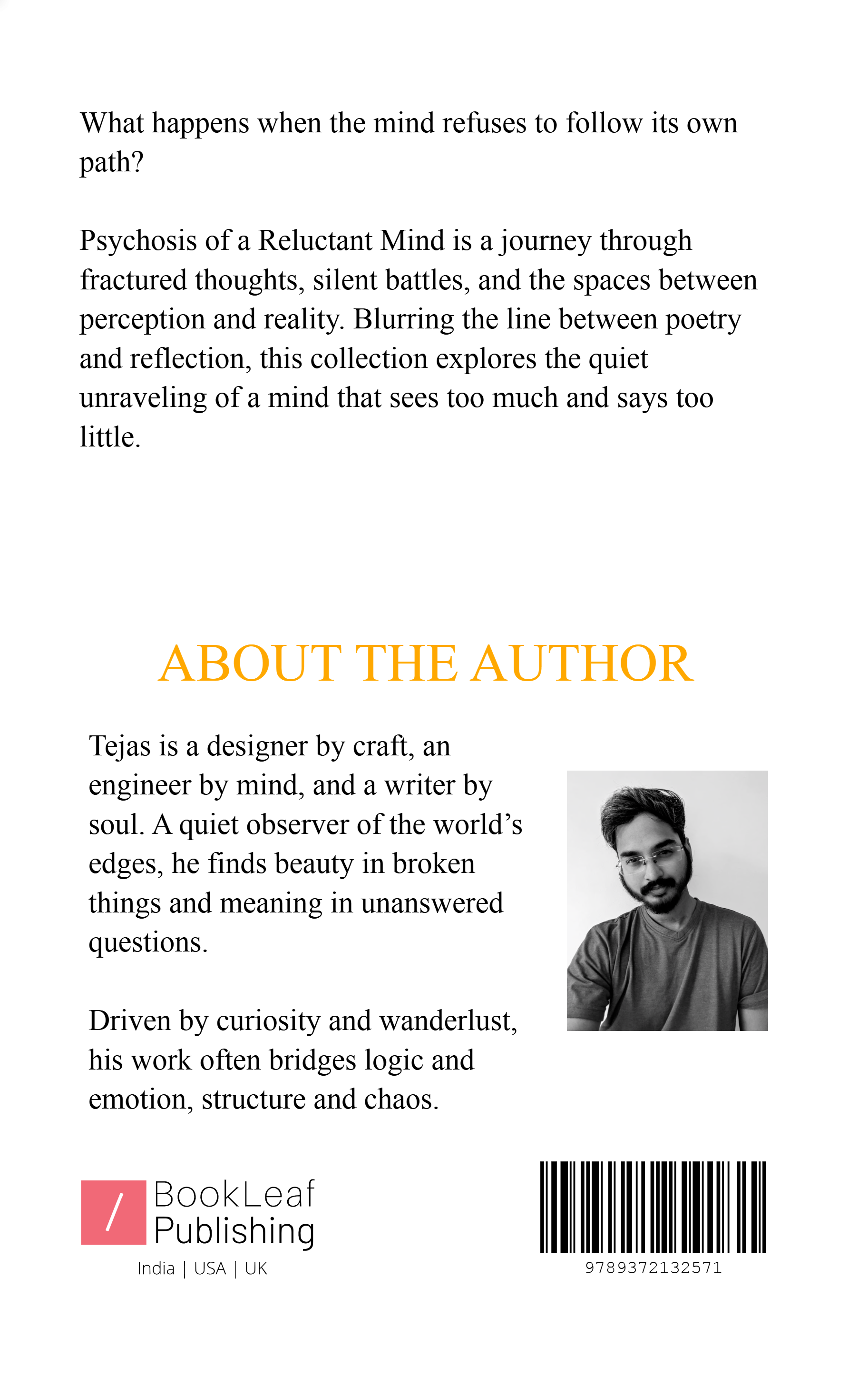 Psychosis of a Reluctant Mind marks his poetic debut a reflection of inner landscapes, unspoken truths, and the blurred lines between thought and experience. Through haunting imagery, emotional honesty, and existential musings, the book invites readers to sit with discomfort, question clarity, and find light in the unlikeliest of places.