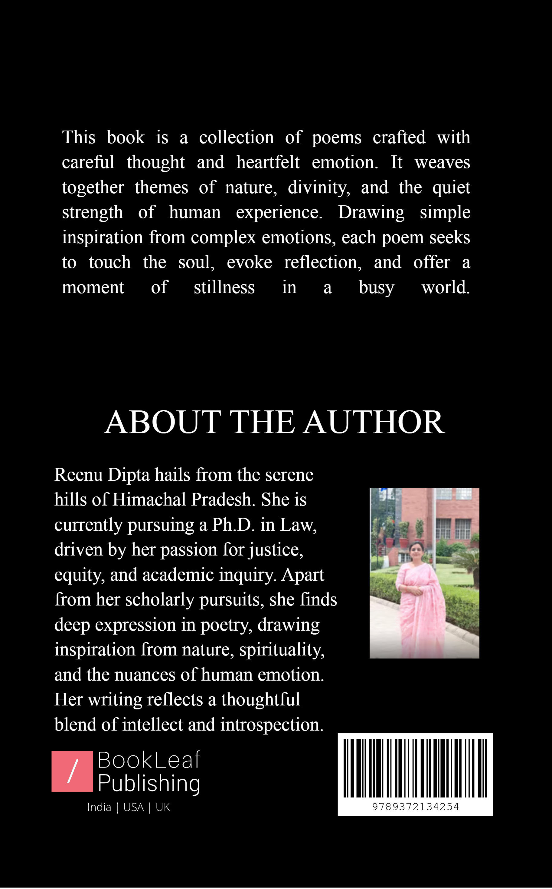 This book is a collection of poems crafted with careful thought and heartfelt emotion. It weaves together themes of nature, divinity, and the quiet strength of human experience. Drawing simple inspiration from complex emotions, each poem seeks to touch the soul, evoke reflection, and offer a moment of stillness in a busy world.