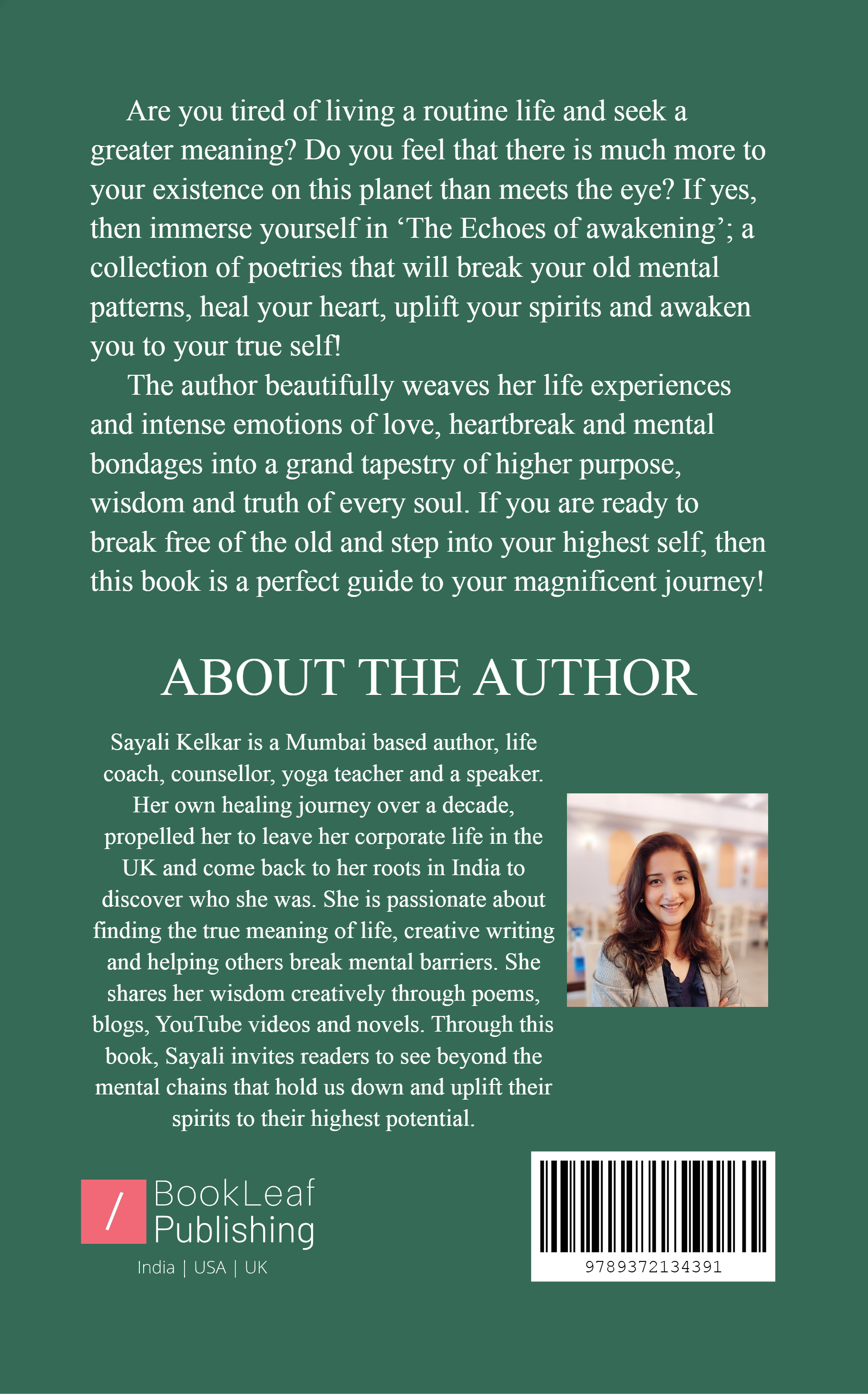 ‘The Echoes of Awakening’ is a collection of poems that takes you on a wild journey from love, heartbreaks, emotional turmoil to the highest realization of our purpose, intuition and who we are in truth. The book was born out of the author’s dramatic life experiences and her constant work to evolve beyond old conditioned ways of thinking. Every poem beautifully stirs your deepest emotions and churns out nuggets of wisdom. These poetries will heal your heart, uplift your spirits and awaken you to your true self!