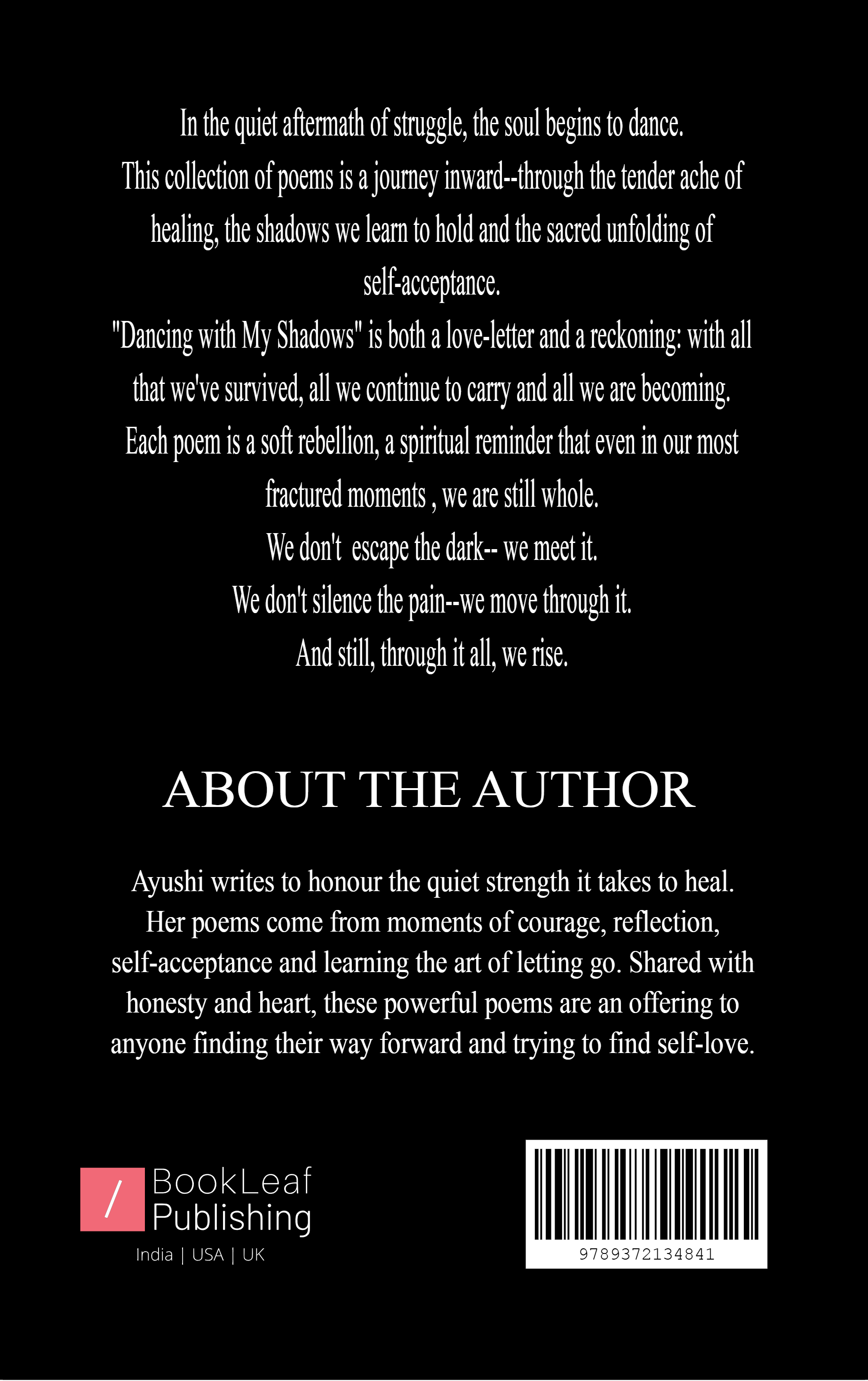 “Dancing with My Shadows” is a soulful collection of poetry that traces the sacred journey inward—where pain meets grace, and darkness learns to dance with light. In these pages, each poem is a step toward wholeness, an embrace of the wounds that shape us and the strength that rises from them. With themes of courage, self-love, and quiet transformation, this collection invites readers to sit with their shadows, honour their truth, and heal with gentleness. It is a tender offering for anyone learning to love themselves fully—even in the places where the light has yet to reach.