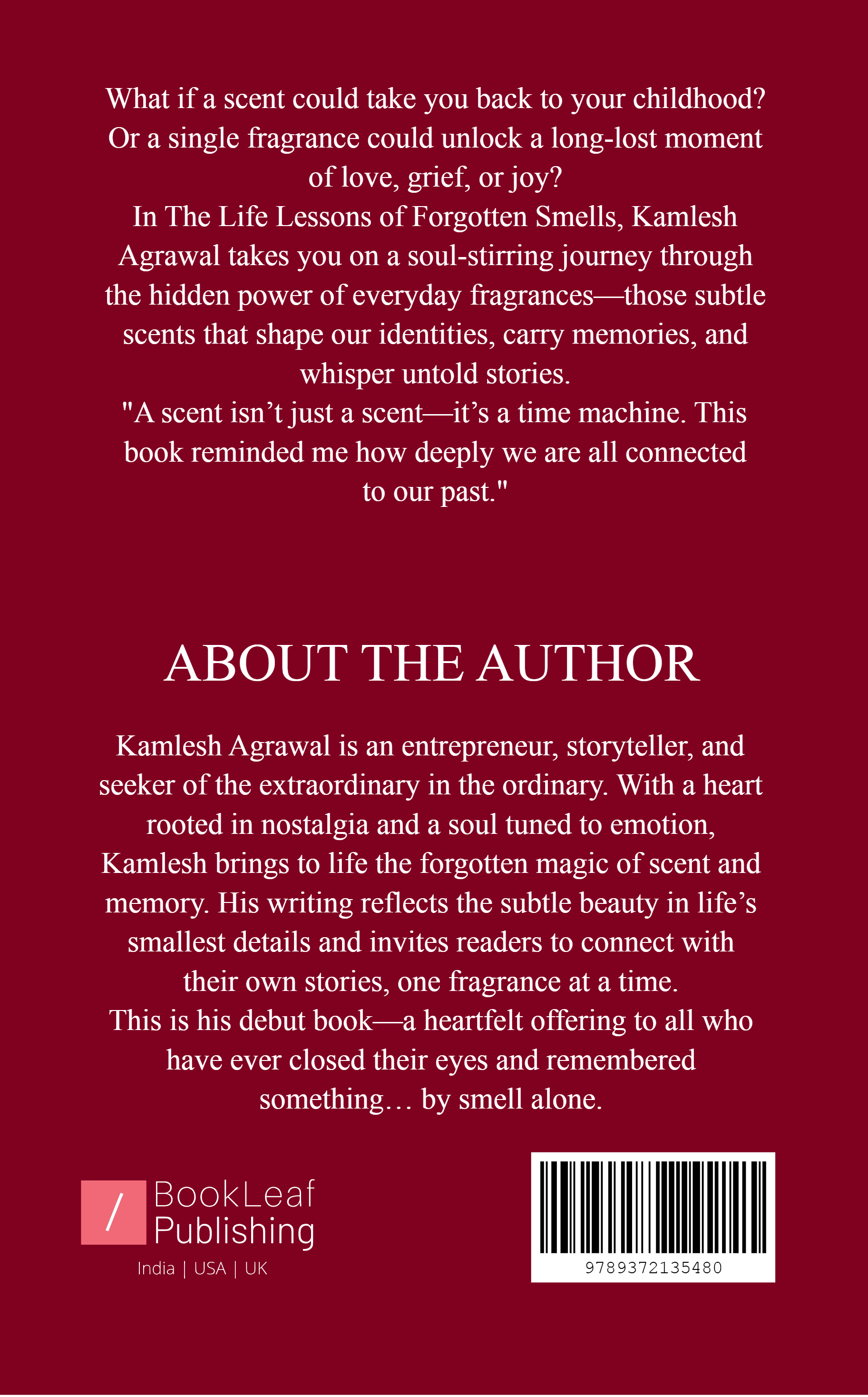 The Life Lessons of Forgotten Smells is a heartfelt journey through the scents that shape our lives. From the fragrance of a grandmother’s hair oil to the aroma of first rain, each chapter explores how forgotten smells unlock deep emotions, memories, and life lessons. Blending nostalgia with poetic reflections, this book invites readers to pause, breathe, and rediscover the beauty in life’s simplest moments. A must-read for anyone who believes that sometimes, a single breath can take you back to where your heart belongs.