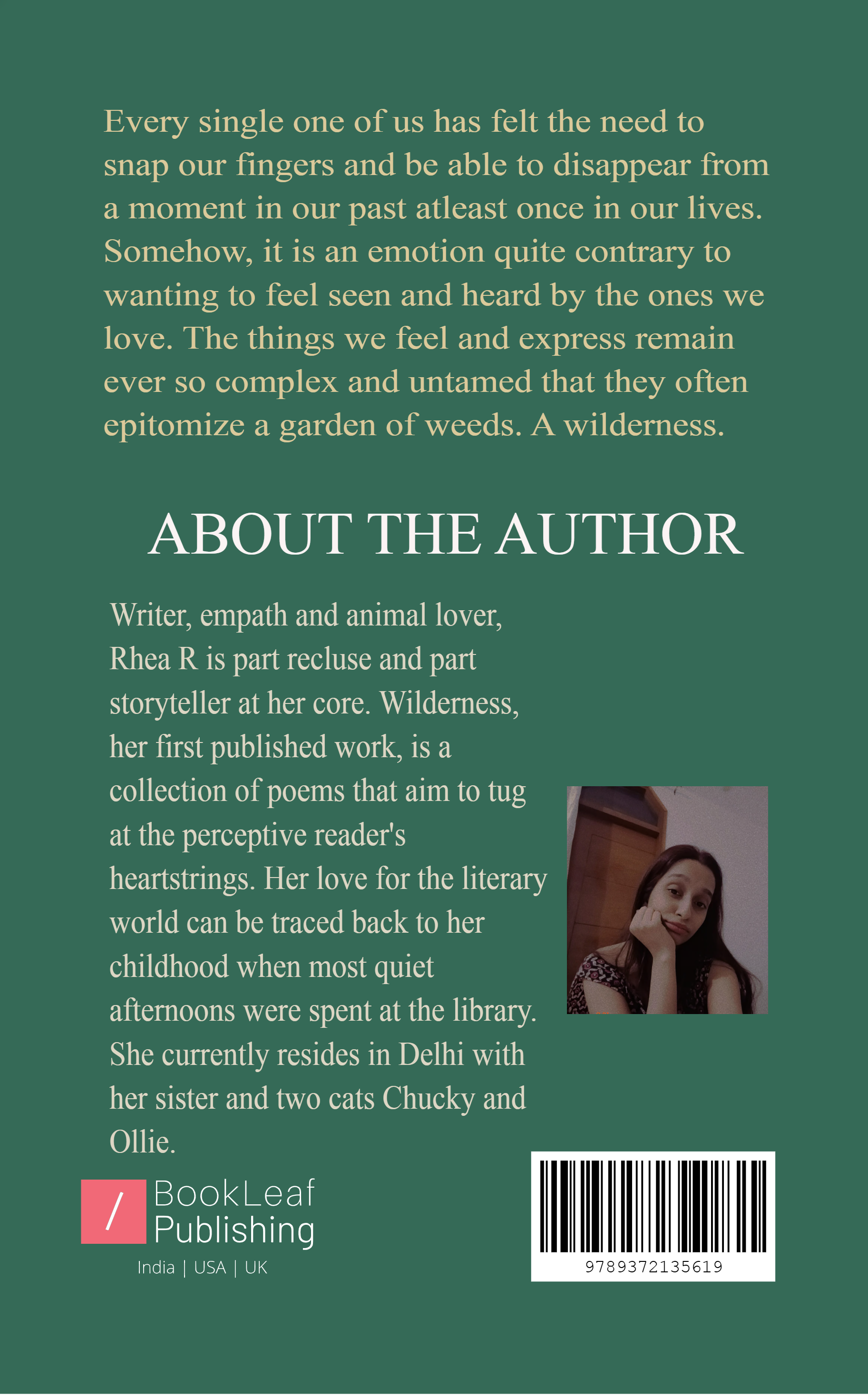 Wilderness or wild lands are Earth's natural environments that have not been significantly modified by human activity. Much like the thoughts that dart around our brain but hardly feel appropriate for another human's ears. They're raw and fierce. Turbulent and boisterous. It's a tangle of undergrowth only we can navigate. The people in our lives, the roles we assume everyday, the challenges we so desperately wish could be avoided. Yet we march on, keeping the largest chunk of our precious feelings, close to our hearts. Maybe you find yourself or someone you know in one of these poems. I certainly did.