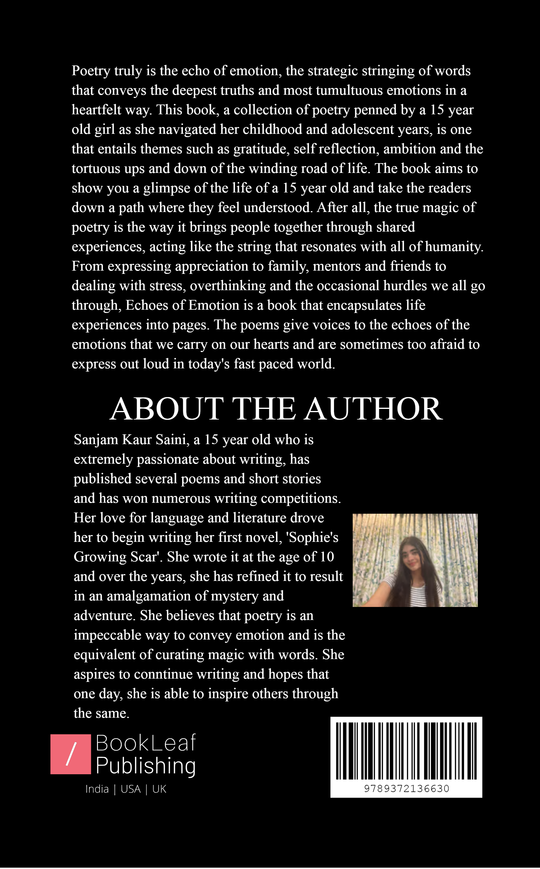 Echoes of Emotion is a book that gives readers a glimpse into the life of a 15 year old navigating her adolescent years. It is a collection of themes ranging from gratitude to self reflection, with poems showing appreciation to family, mentors and friends while also those that focus on overthinking, stress and the tumultuous challenges that life throws our way. It aims to show readers that they’re not alone and takes them on an emotional roller coaster through words and pages. Essentially, it’s an attempt to encapsulate the tortuous nature of life into poetry written straight from the heart.