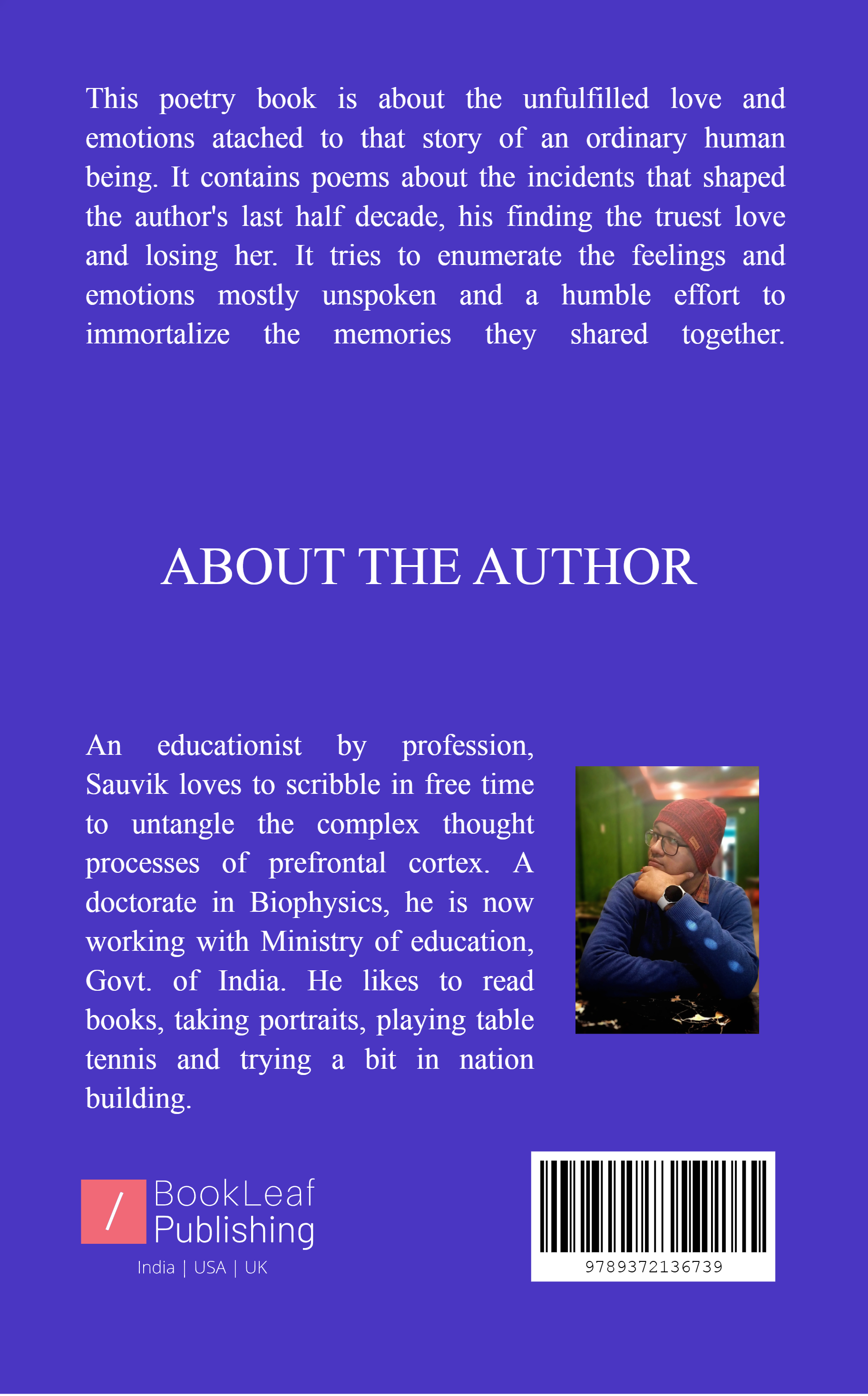 This book presents a saga of an unfulfilled love and emotions unspoken. This is a humble effort to immortalize the connection they share inspite of the fact that they are not in a relationship.