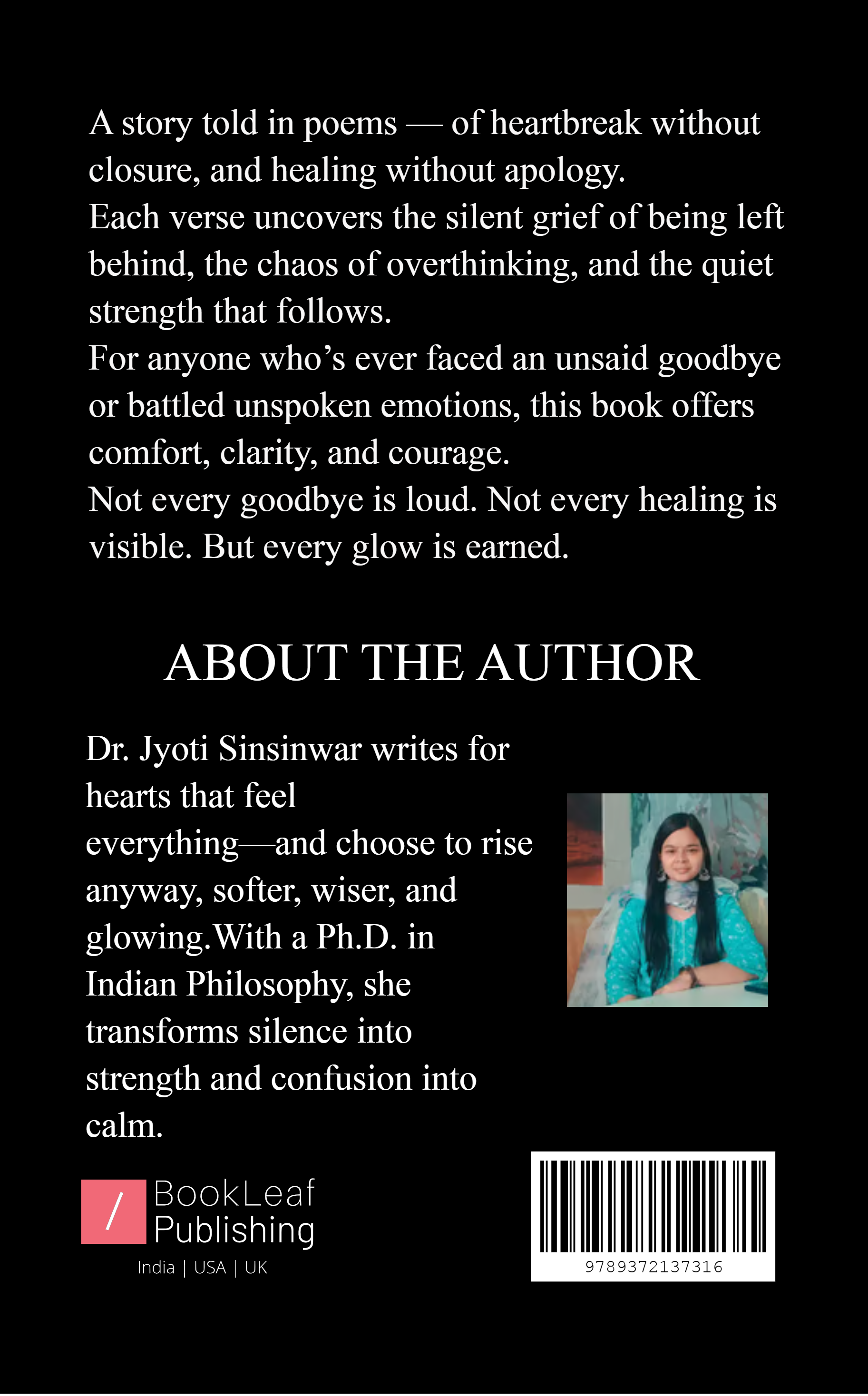 Through 21 emotionally raw yet healing narrative style poems, it traces the journey of someone who was left without closure but found meaning in silence. Each poem unfolds a stage of realization — from confusion to clarity, heartbreak to healing, and loss to light.