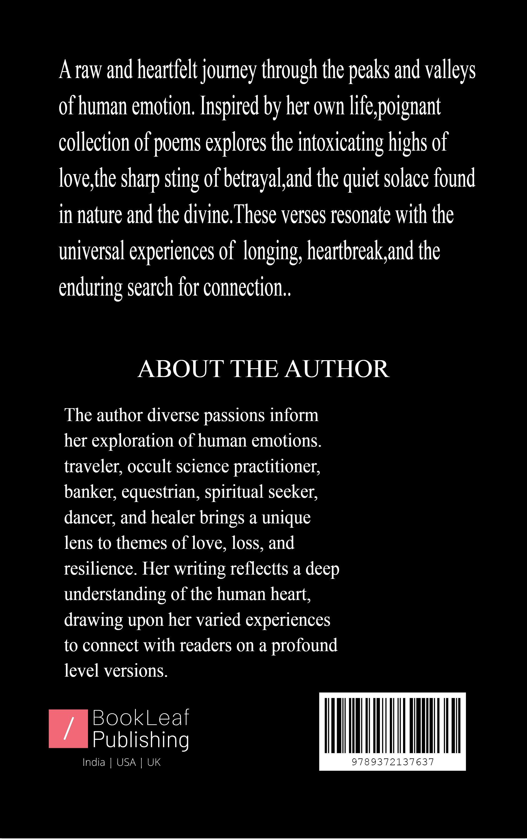 It is a debut collection of poems weaves together the intricate threads of human emotion, the profound beauty of the natural world, and the guiding presence of the divine. Inspired by the author's own life events, these heartfelt verses explore the intoxicating power of love alongside the devastating impact of betrayal. Through vivid imagery and raw honesty, it captures the delicate dance between joy and sorrow, finding moments of peace and reflection in the enduring embrace of nature. This collection is an intimate exploration of the human spirit's capacity for both great love and deep pain, ultimately seeking to illuminate the enduring essence of our shared emotional landscape