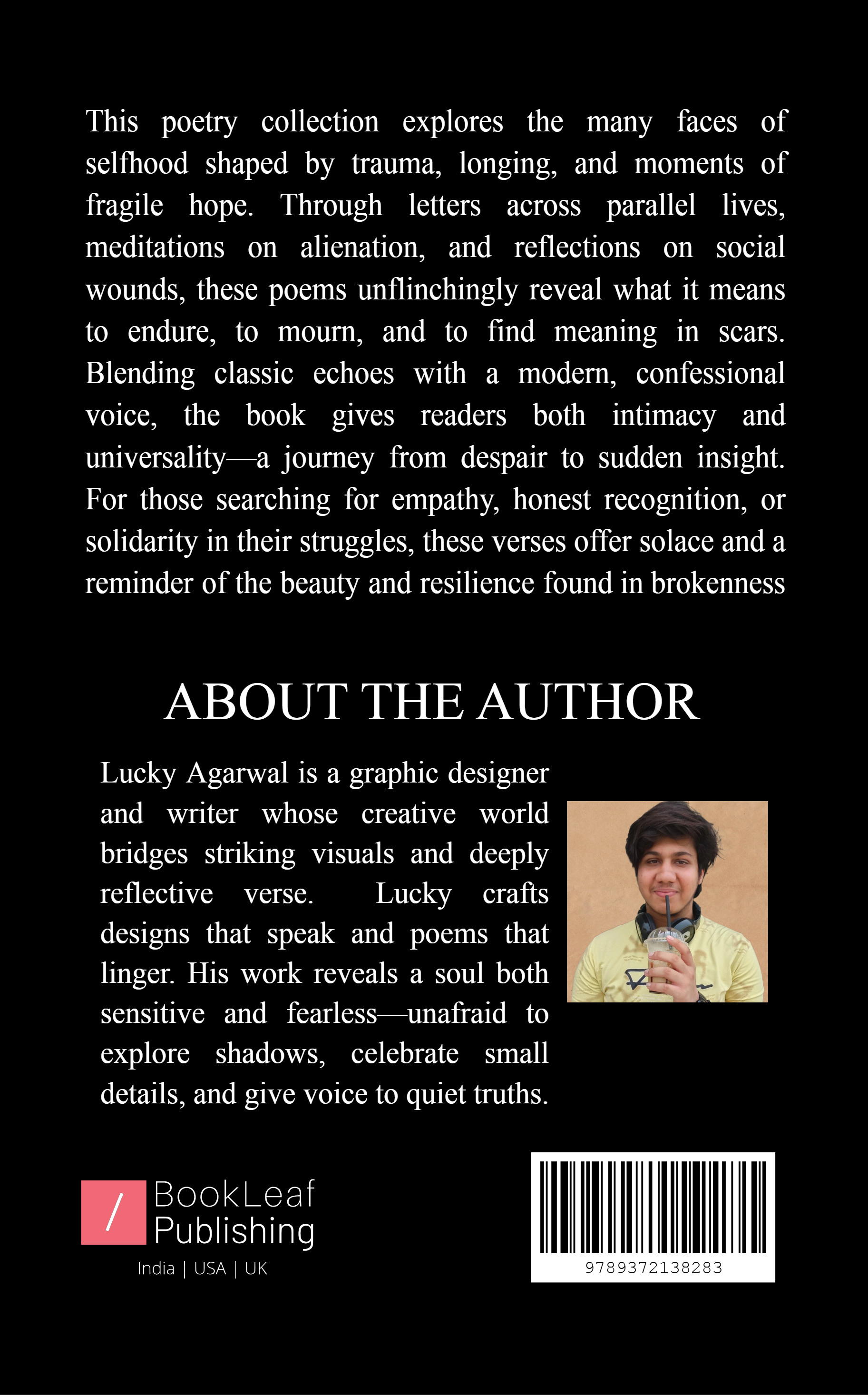 Lucky Agarwal is a graphic designer and poet whose creations intertwine aesthetic precision with soul-stirring verse. Enamored by typography, language, and the alchemy of storytelling, his work transcends mere visuals and words to craft immersive, emotive experiences. Driven by an introspective spirit and an audacious curiosity, Lucky dares to explore shadows and silences often overlooked. Each design he shapes and each poem he pens becomes a quiet testament to the profound beauty hidden within our most delicate truths.