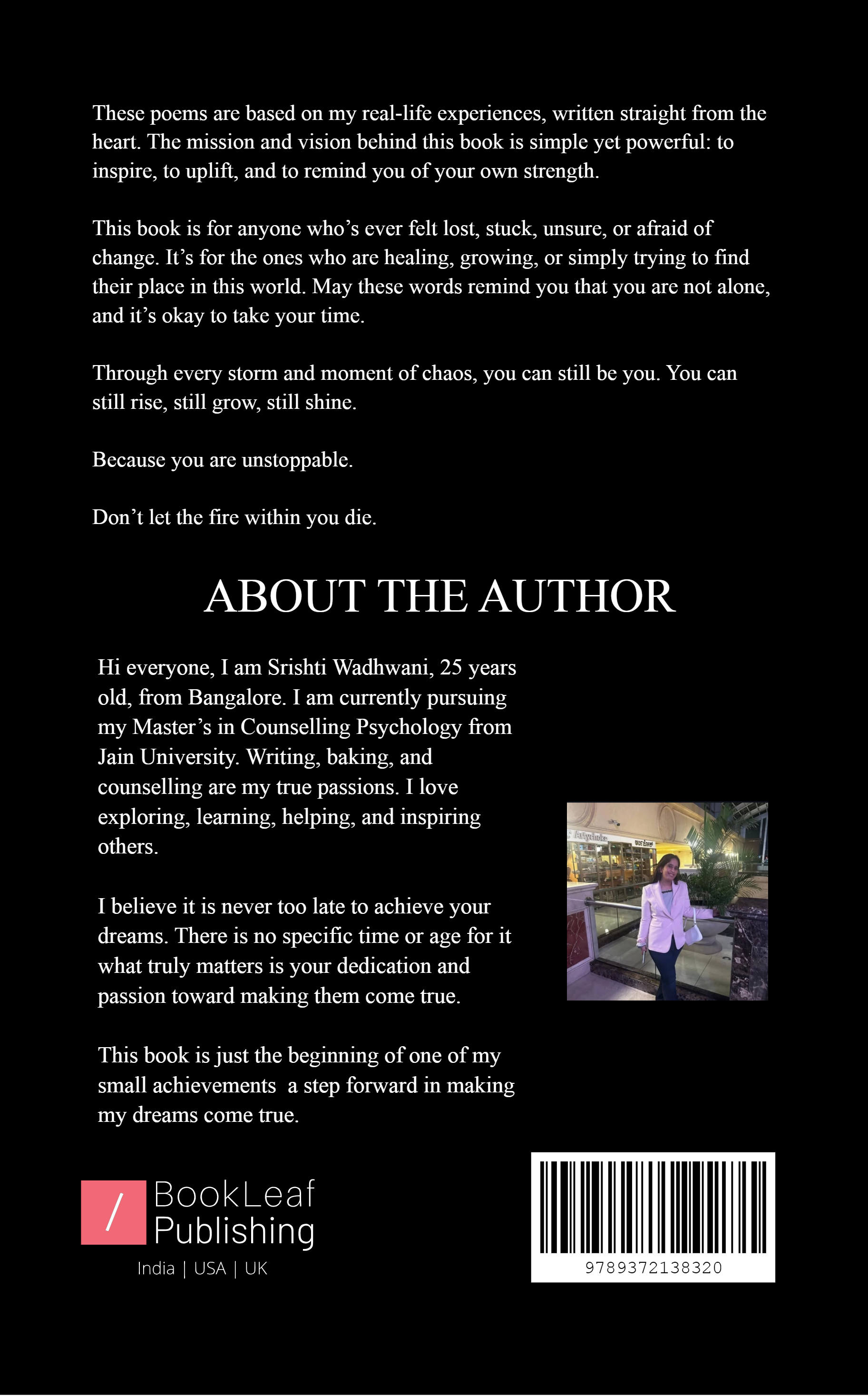 These poems are based on my real-life experiences, written straight from the heart. The mission and vision behind this book is simple yet powerful: to inspire, to uplift, and to remind you of your own strength.