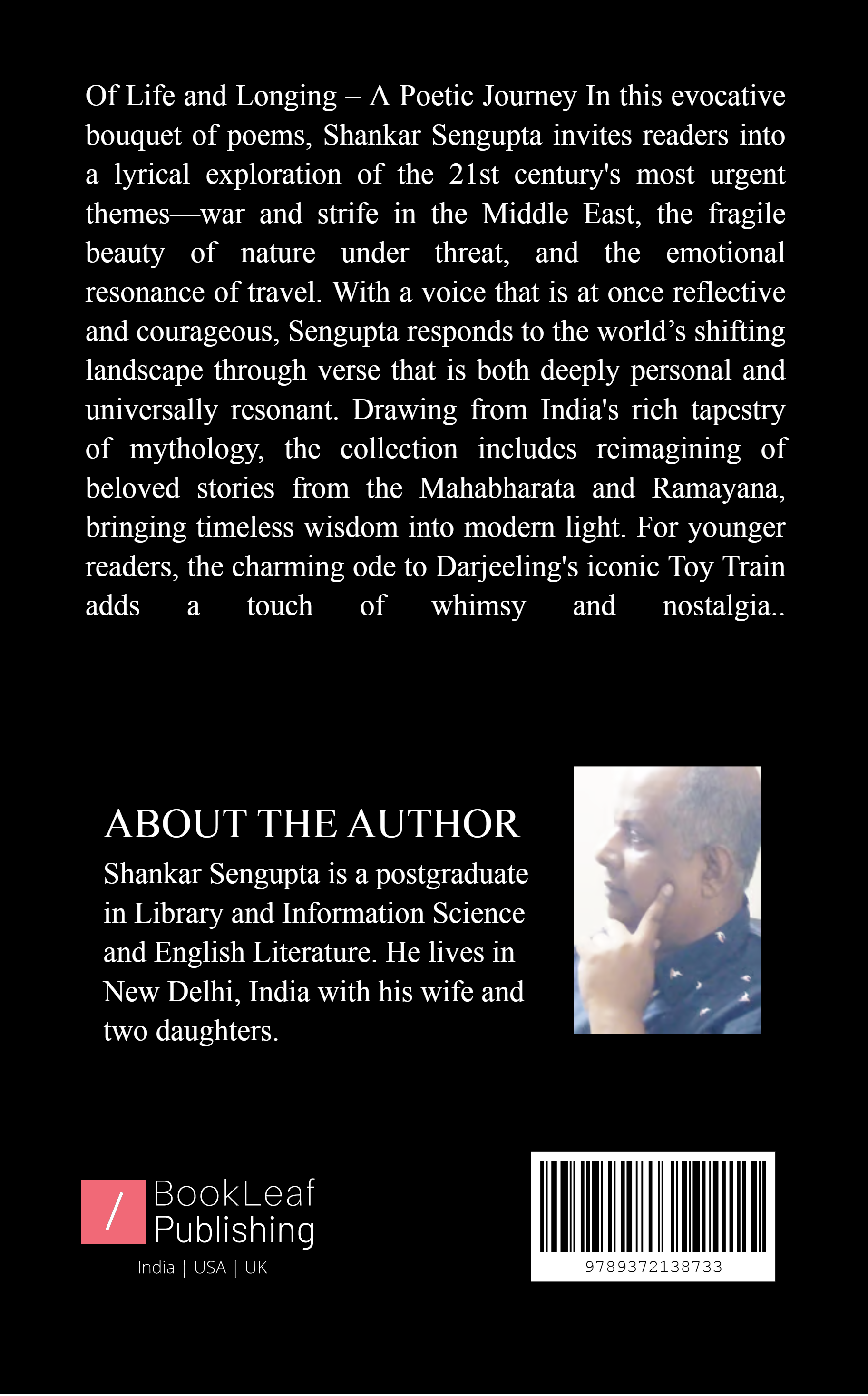 Of Life and Longing is a vibrant bouquet of poems that echo the hopes, fears, and reflections of life in the 21st century. From the turmoil of war and unrest in the Middle East to the pressing realities of climate change, these poems explore themes that touch us all. Interwoven with love for nature and the spirit of travel, each piece invites readers on a journey both outward and inward. And for the young at heart, there’s a whimsical poem inspired by the enchanting joy ride of the Darjeeling Hill Railway in West Bengal.