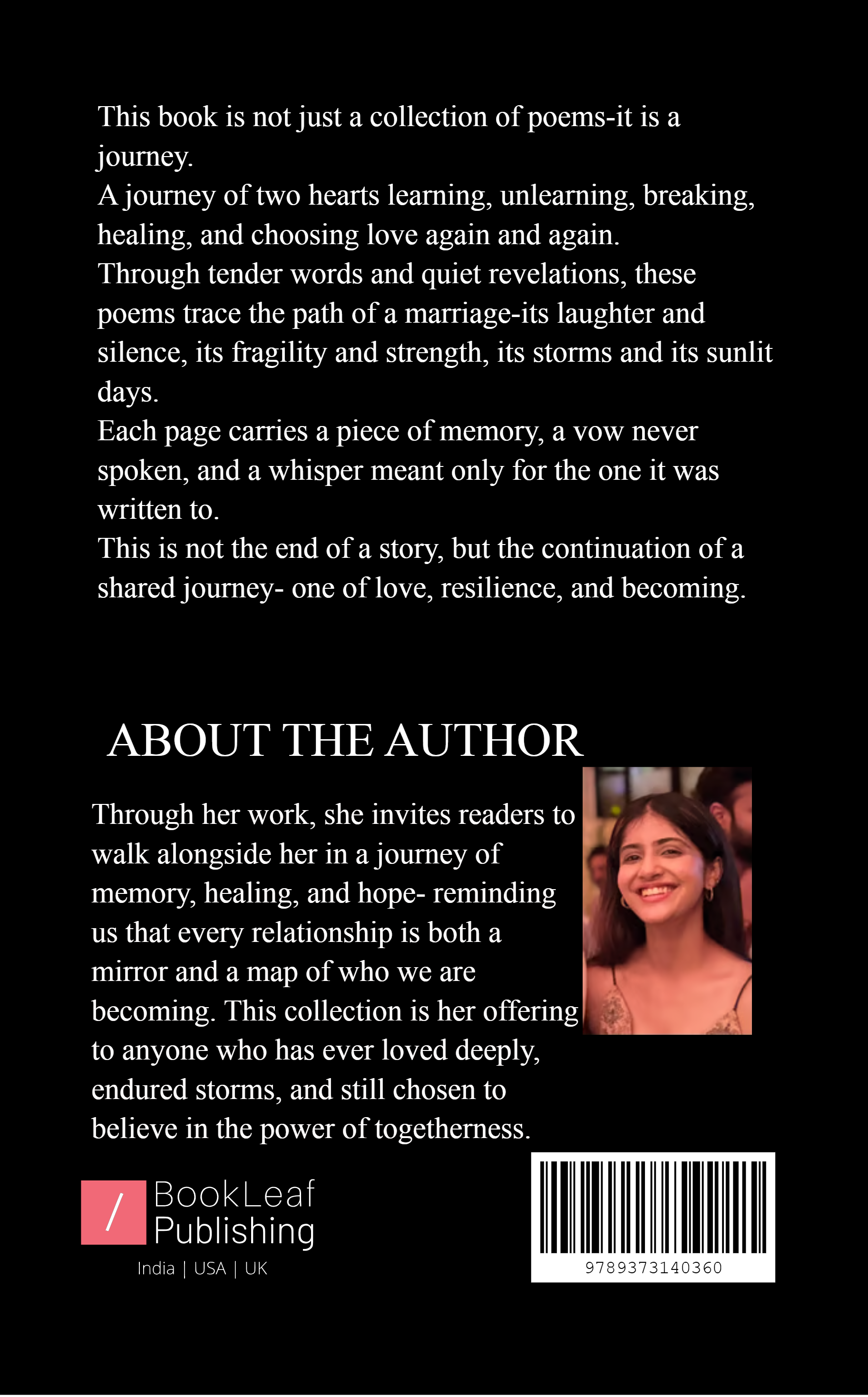 Through tender words and quiet revelations, these poems trace the path of a marriage—its laughter and silence, its fragility and strength, its storms and its sunlit days.