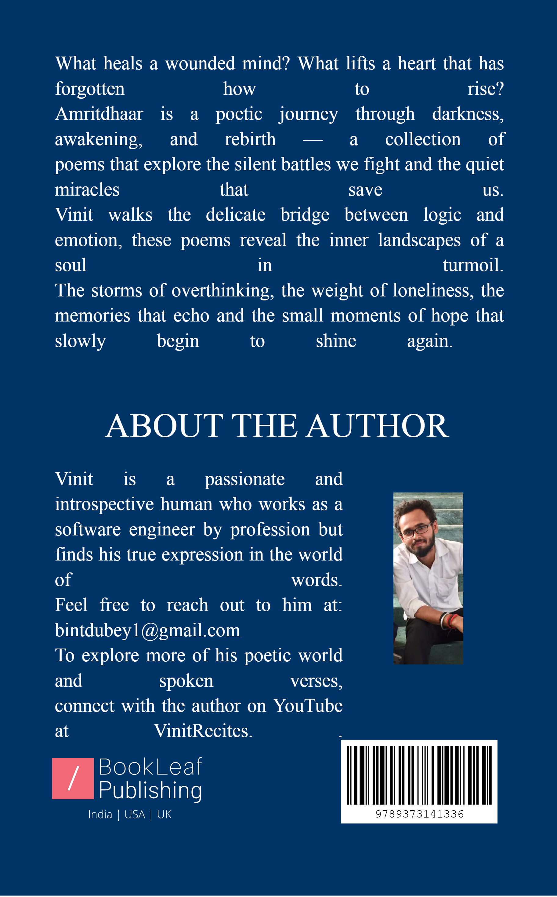 Vinit walks the delicate bridge between logic and emotion, these poems reveal the inner landscapes of a soul in turmoil the storms of overthinking, the weight of loneliness, the memories that echo and the small moments of hope that slowly begin to shine again.