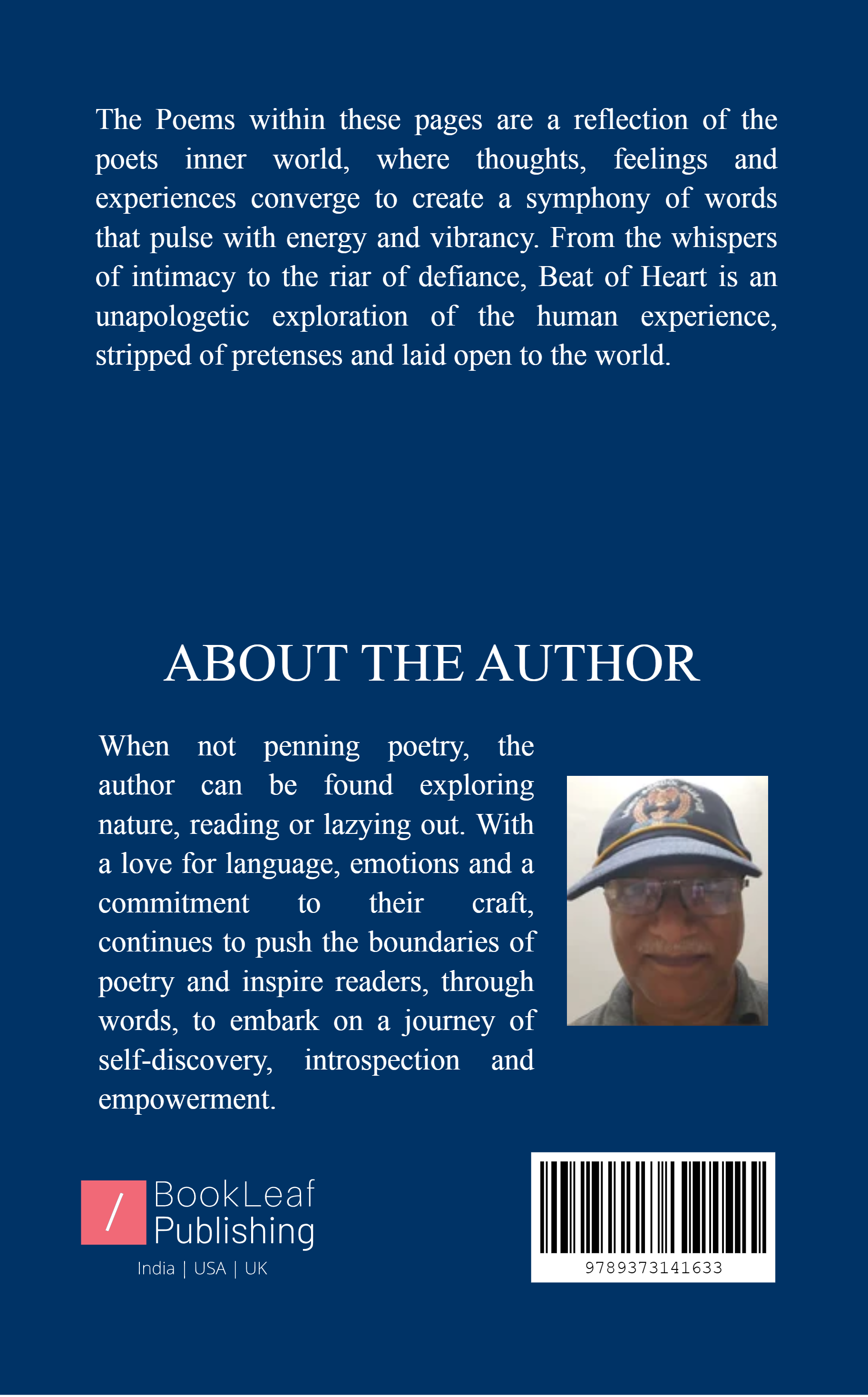 The Poems within these pages are a reflection of the poets inner world, where thoughts, feelings and experiences converge to create a symphony of words that pulse with energy and vibrancy. From the whispers of intimacy to the riar of defiance, Beat of Heart is an unapologetic exploration of the human experience, stripped of pretenses and laid open to the world.