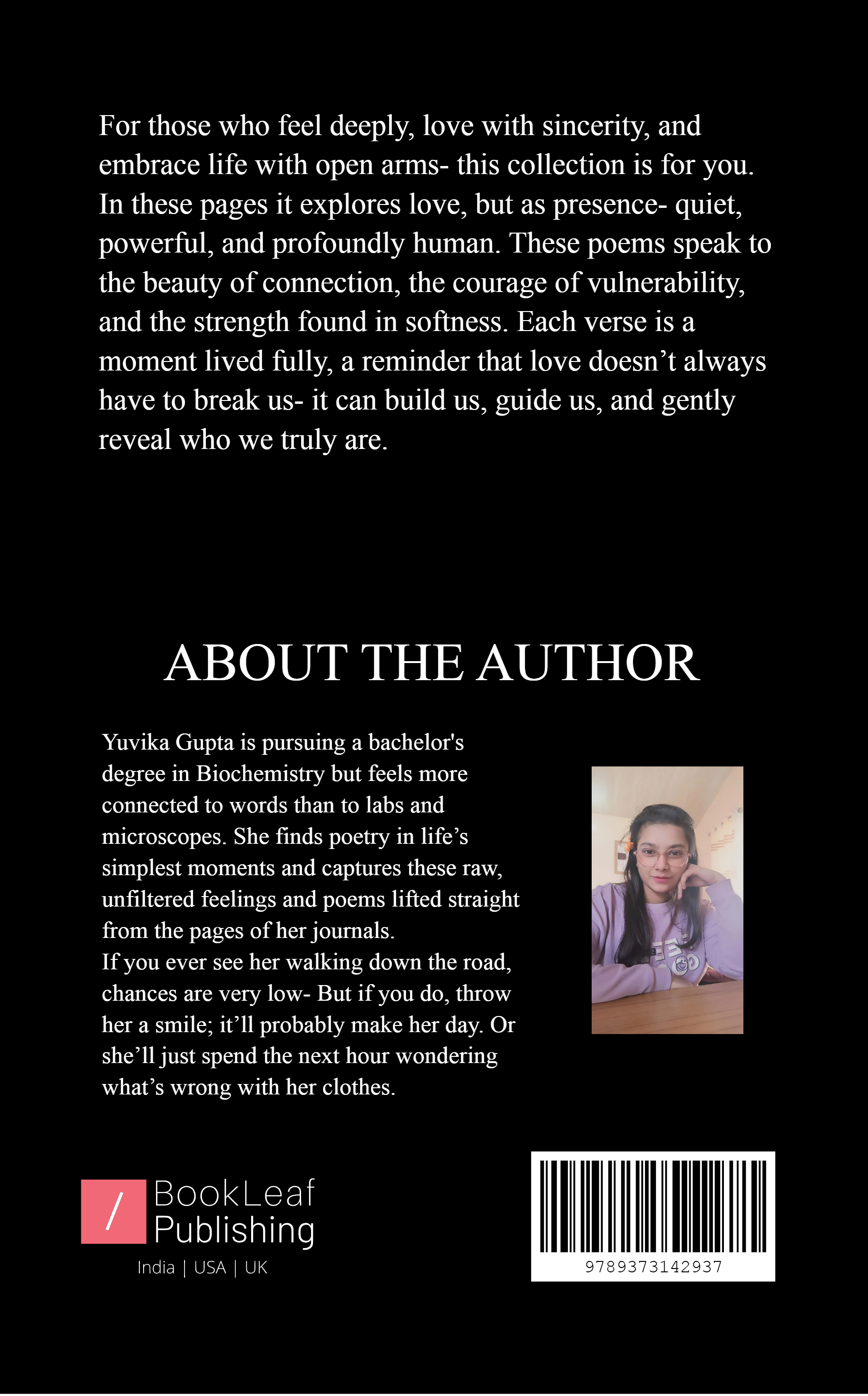 In these pages it explores love, but as presence- quiet, powerful, and profoundly human. These poems speak to the beauty of connection, the courage of vulnerability, and the strength found in softness. Each verse is a moment lived fully, a reminder that love doesn’t always have to break us- it can build us, guide us, and gently reveal who we truly are.