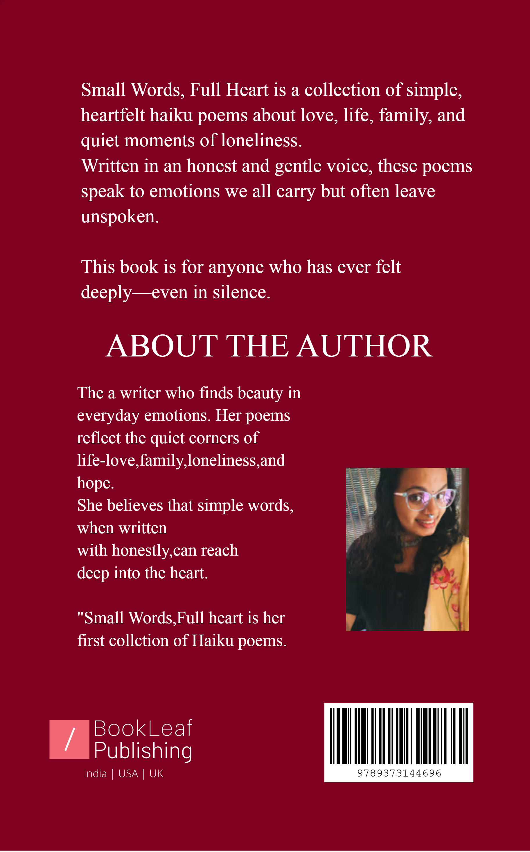 Small Words, Full Heart is a collection of simple, heartfelt haiku poems about love, life, family, and quiet moments of loneliness.