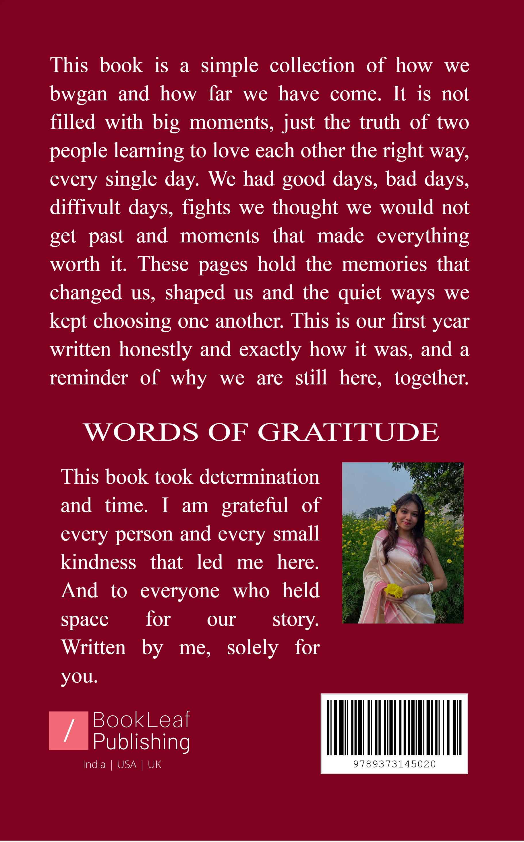 A year of love told the way it truly happened—through fights, comfort, fear, tenderness, and the slow learning of each other. This book gathers the memories that shaped us and the moments that changed me as a whole. It is a reminder that real love isn’t perfect, just chosen, protected, and held with both hands