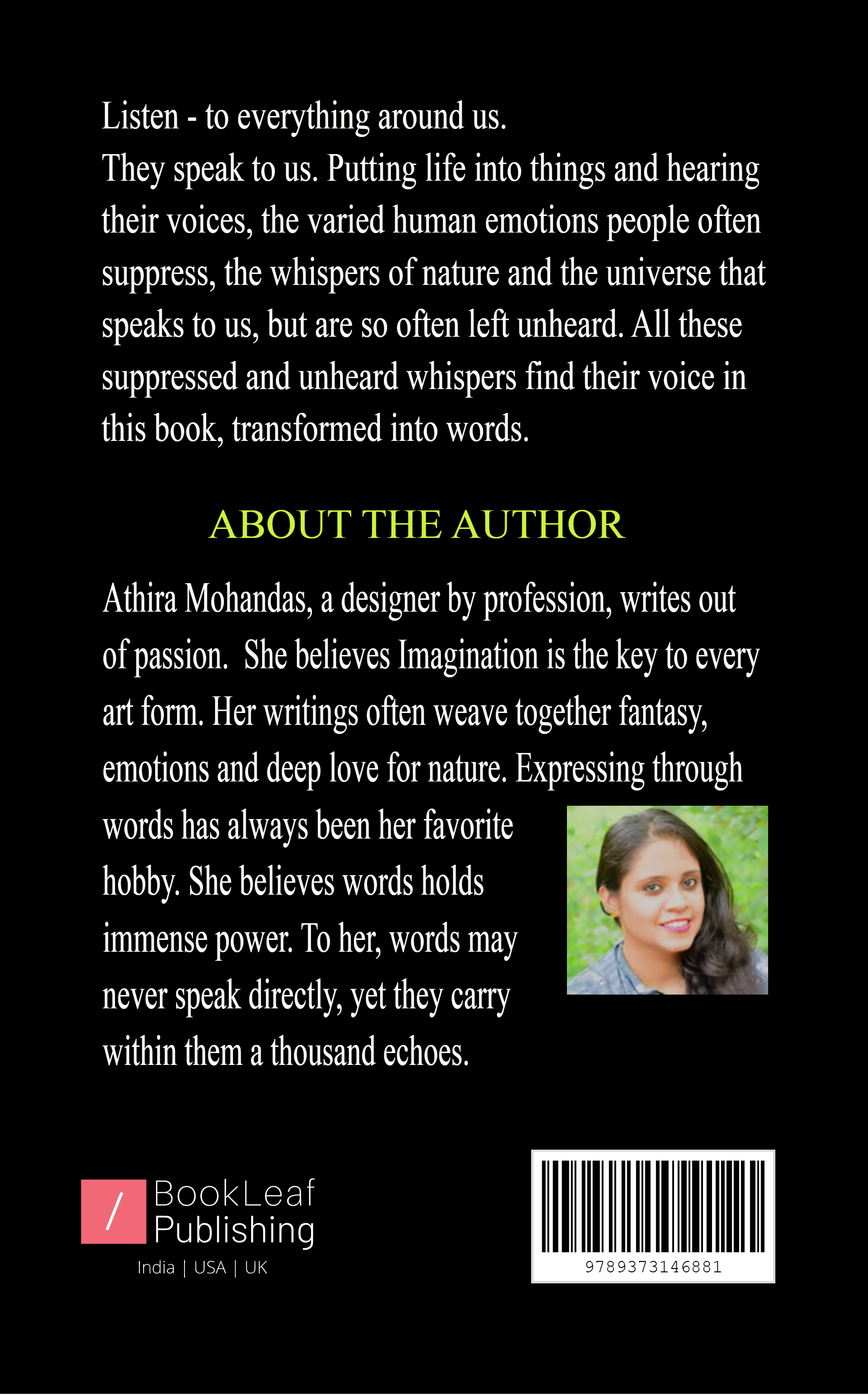 They speak to us. Putting life into things and hearing their voices, the varied human emotions people often suppress, the whispers of nature and the universe that I feel speak to us, but are so often left unheard. All these suppressed and unheard whispers find their voice in this book, transformed into words.
