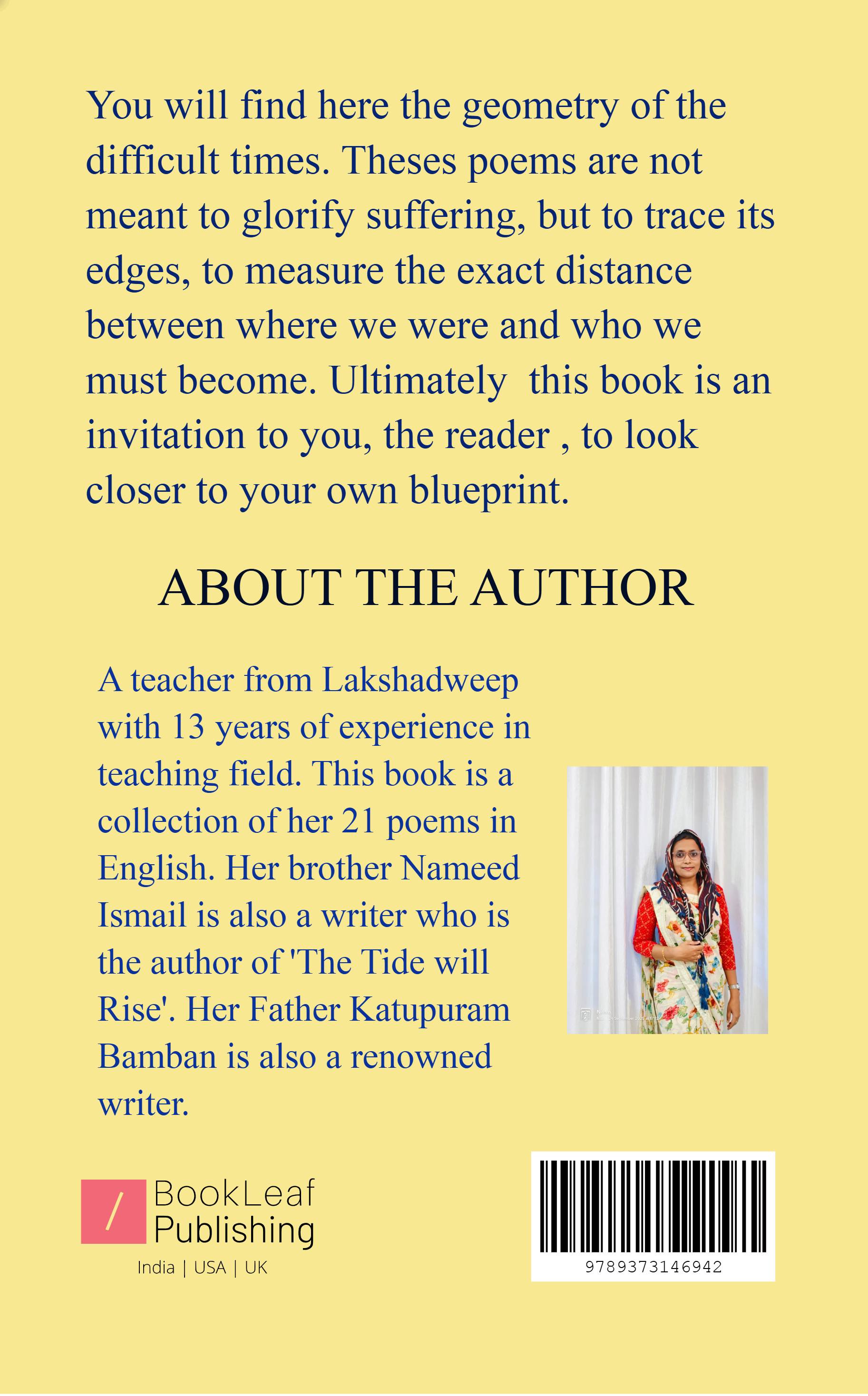 ' The Geometry of Life' is the First book by Nazeeba Ismail . This book includes 21 Poems which tells us about different experiences and phylosophy of life.