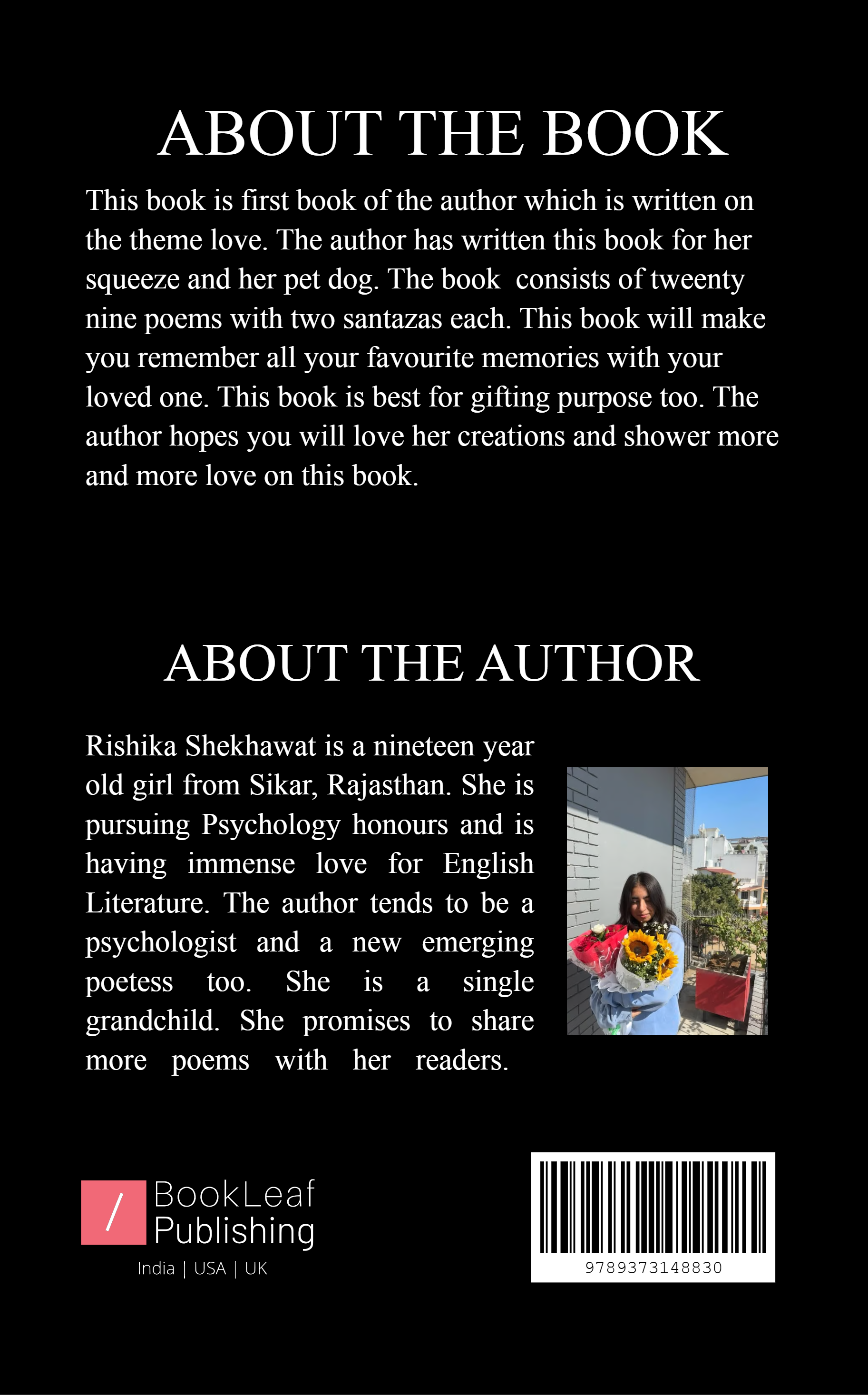 The main theme of this book is love. This book is dedicated to her pet dog 'HOPE' and her squeeze. This book will make you remember all your memories which you have spent with your loved ones. This book is also suitable for gifting purpose.