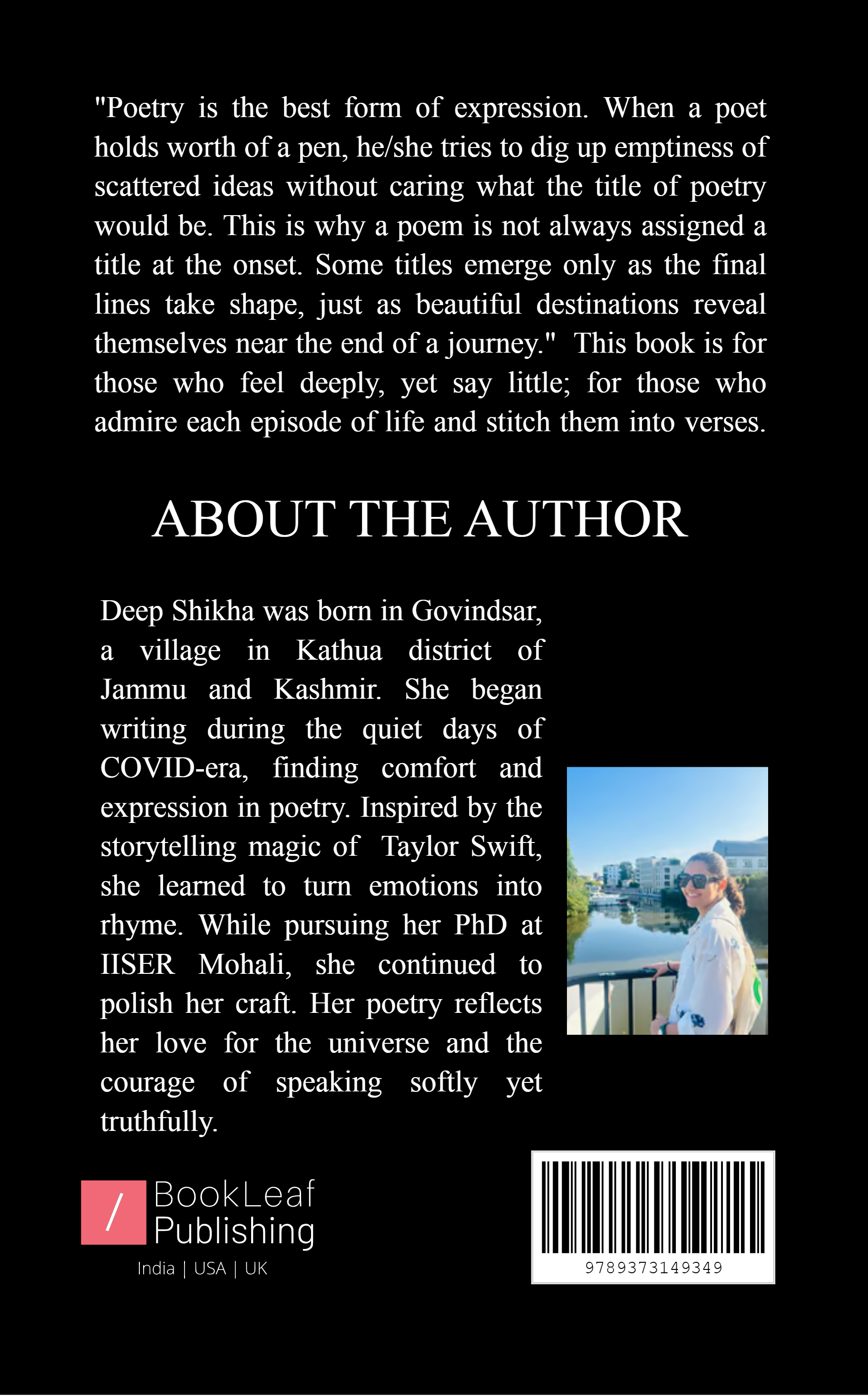 This book is a collection of quiet emotions: poems born in silence, shaped in solitude, and finished in moments of soft clarity. Written during a journey from the stillness of COVID days to the demanding hours of a PhD, these verses explore unspoken feelings, unnamed thoughts, and the delicate art of finding meaning in emptiness. Each poem unfolds gently, like a destination discovered at the end of a long walk, reminding the reader that not every story begins with a title, some reveal themselves only when the heart is ready to listen and mind is ready to accept.