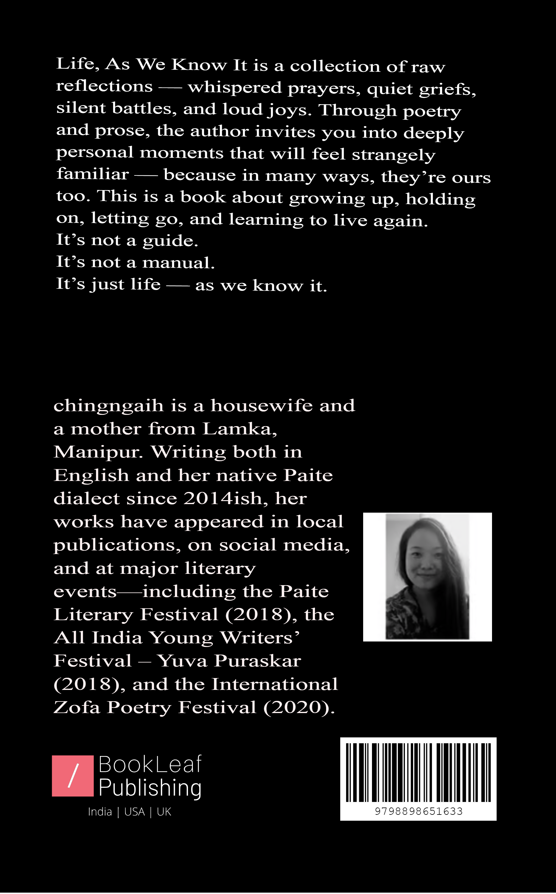 Through poetry and prose, this book invites you into deeply personal moments that feel strangely familiar – because in many ways, they’re ours too. A journey of growing up, holding on, letting go, and learning to live again, this is life – as we know it.