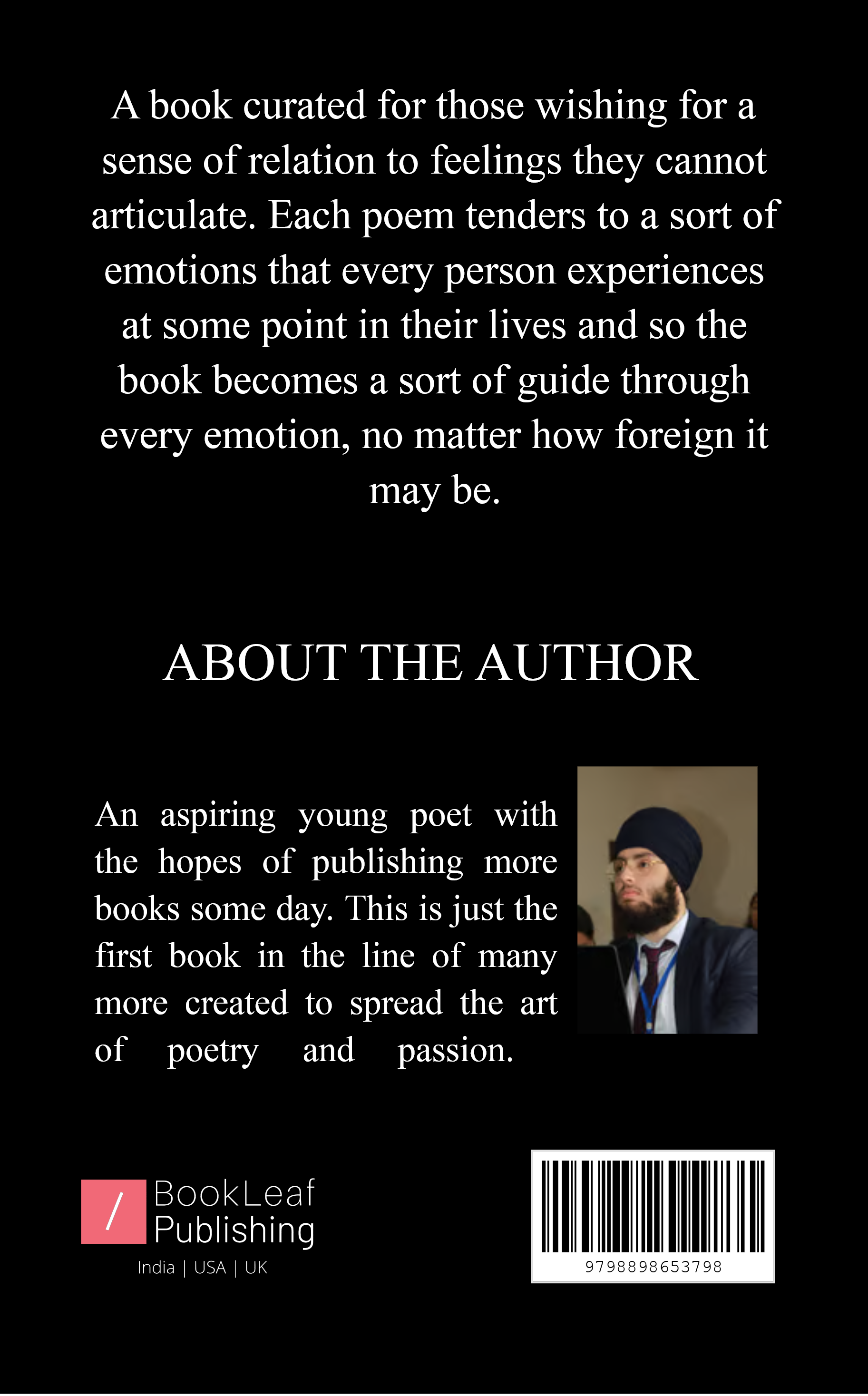 A book curated for those wishing for a sense of relation to feelings they cannot articulate. Each poem tenders to a sort of emotions that every person experiences at some point in their lives and so the book becomes a sort of guide through every emotion, no matter how foreign it may be.