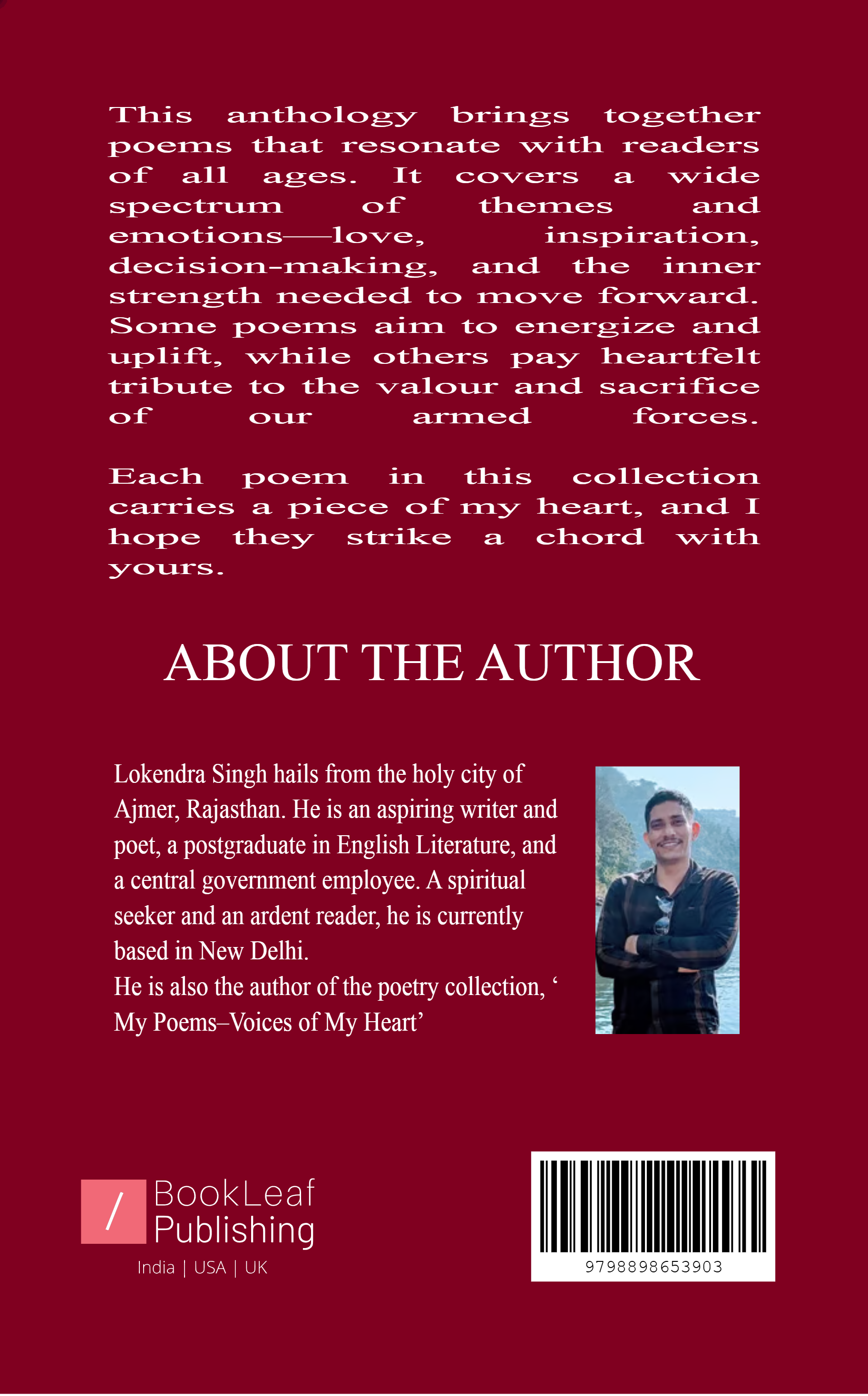 This anthology brings together poems that resonate with readers of all ages. It covers a wide spectrum of themes and emotions—love, inspiration, yoga, decision-making, and the inner strength needed to move forward. Some poems aim to energize and uplift, while others pay heartfelt tribute to the valour and sacrifice of our armed forces.
