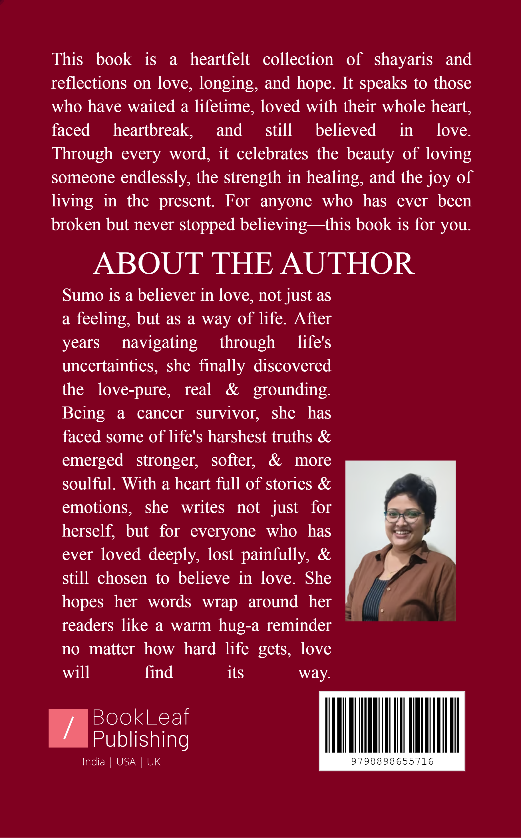 This book is a heartfelt collection of shayaris and reflections on love, longing, and hope. It speaks to those who have waited a lifetime, loved with their whole heart, faced heartbreak, and still believed in love.