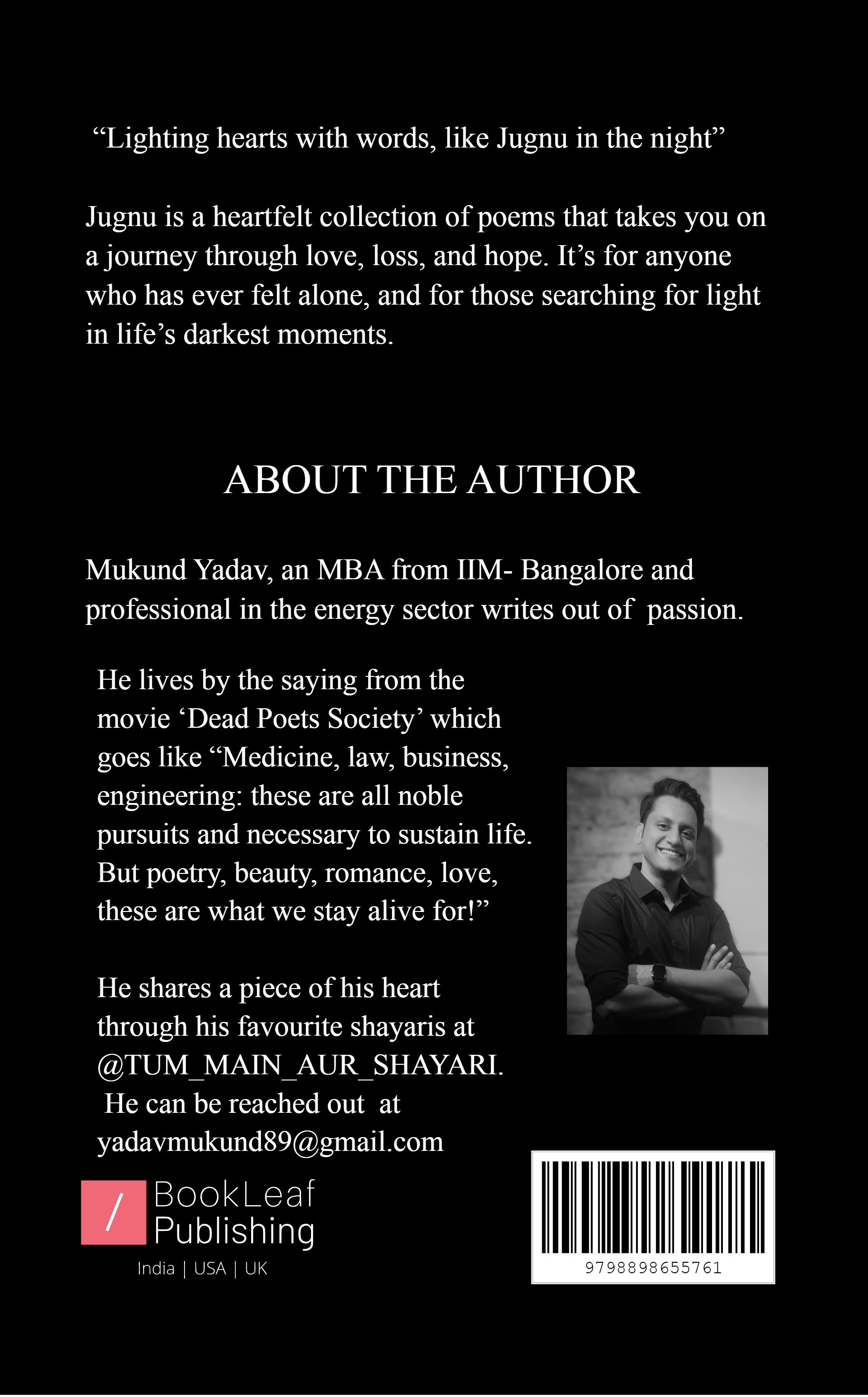 Jugnu is a heartfelt collection of poems that takes you on a journey through love and hope. It’s for anyone who has ever felt alone & for those searching for light in life’s darkest moments.