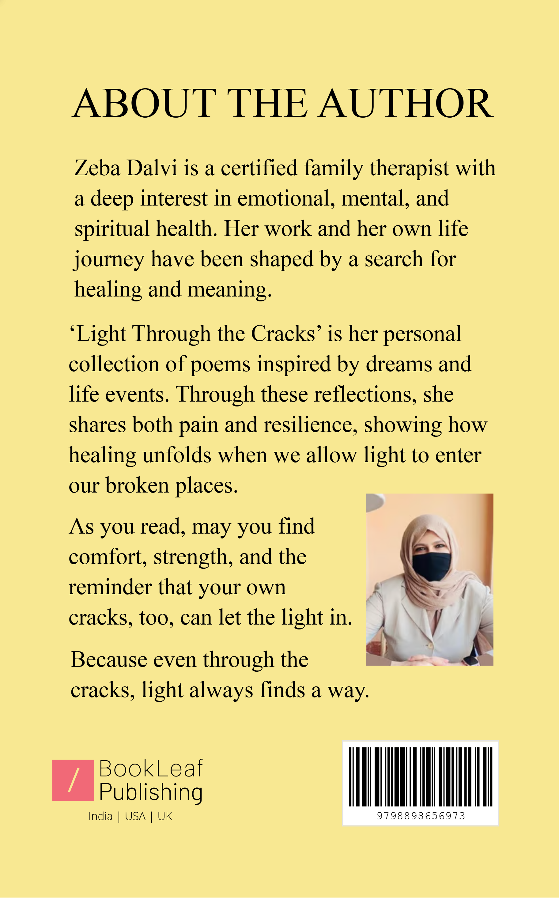 What do we do with the wounds that shape us? Do we bury them in silence, or let them become the cracks where light enters? Through poems of pain, faith, and healing, Zeba Dalvi reveals that no scar is in vain and every wound can become a source of strength and light for you.