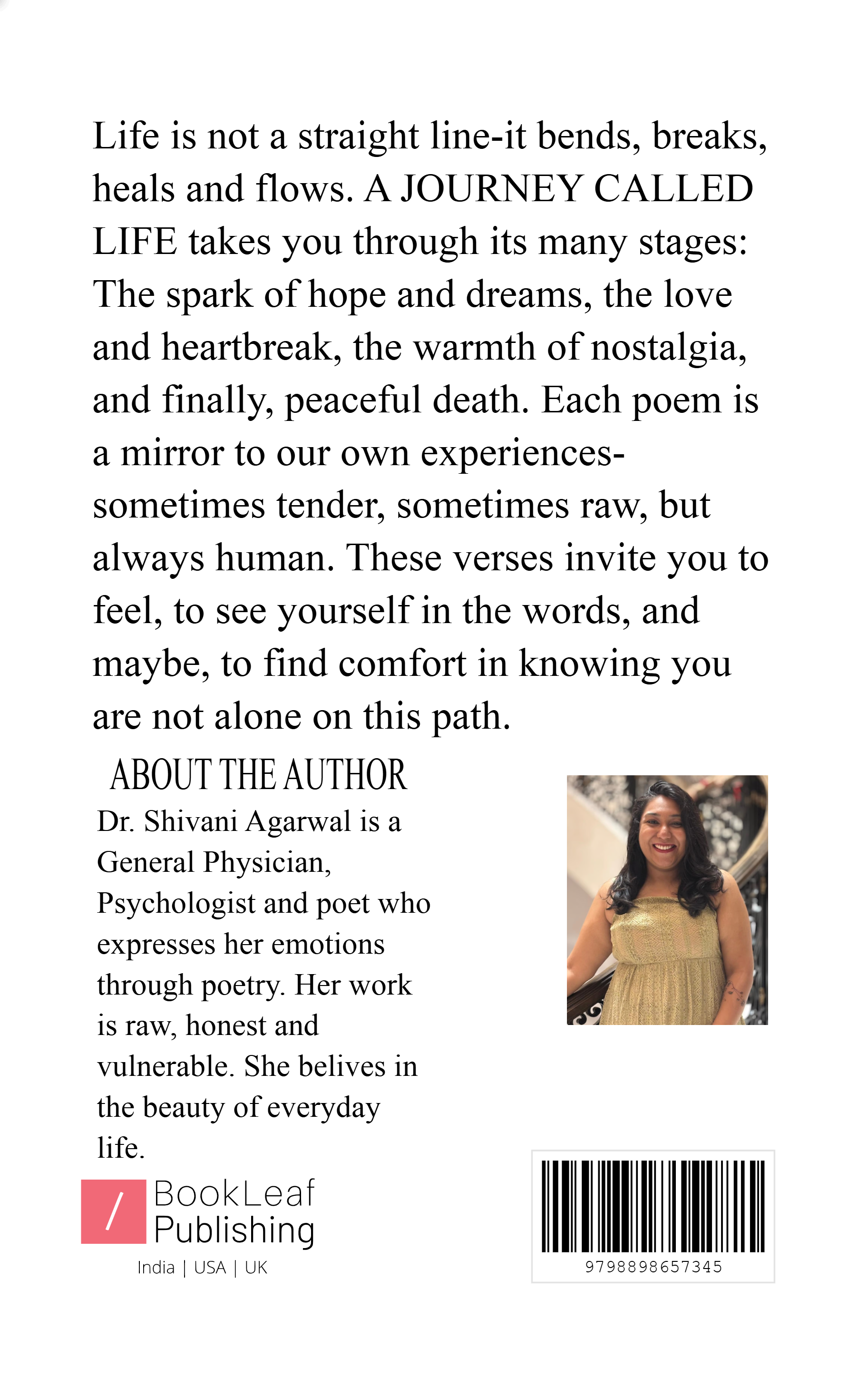 A Journey Called Life takes you through life's many stages: the spark of hope, the sweetness of dreams, the fire of love, the ache of heartbreak, the warmth of nostalgia, and finally, the quiet acceptance of death. Each poem is a mirror to our own experiences—sometimes tender, sometimes raw, always human. These verses invite you to pause, reflect, and feel; to see yourself in the words, and maybe, to find comfort in knowing you are not alone on this path.