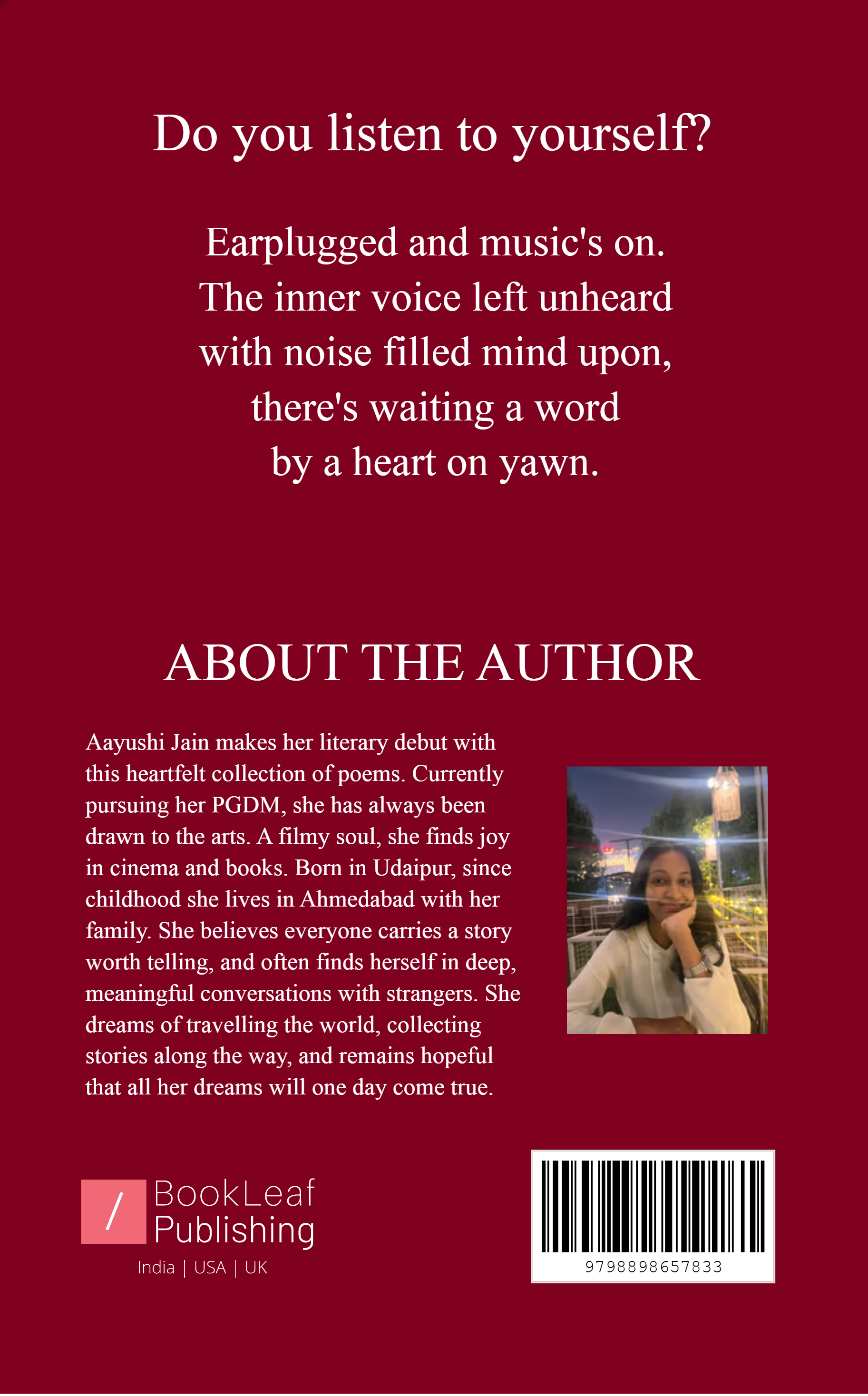The Songs my Soul Sings is a heartfelt collection of poems that gives voice to the innate silences, the still and soft echo that awaits to be listened. Far from the worldly storm of noises, it is a gentle breeze to be felt and surrounded by. It captures the music of love, longings, dreams, desires, hopes, loss and the ultimate journey towards oneself. With simplicity and sincerity, these poems invite readers to pause and listen to the whispers within their own hearts. Each piece carries a fragment of the soul-sometimes tender, sometimes restless, always honest. This is not just a collection of poems, but an intimate conversation between the writer and every reader who dares to feel deeply.