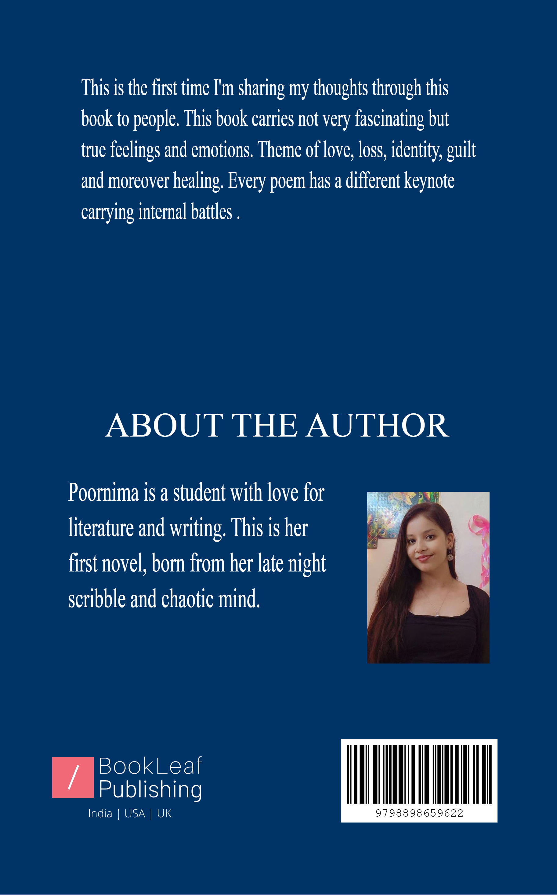 This book carries themes of love, loss, identity and healing with time. It carries poem with various emotions - maybe people can relate or maybe not. But surely will be able to understand every feeling through my words.