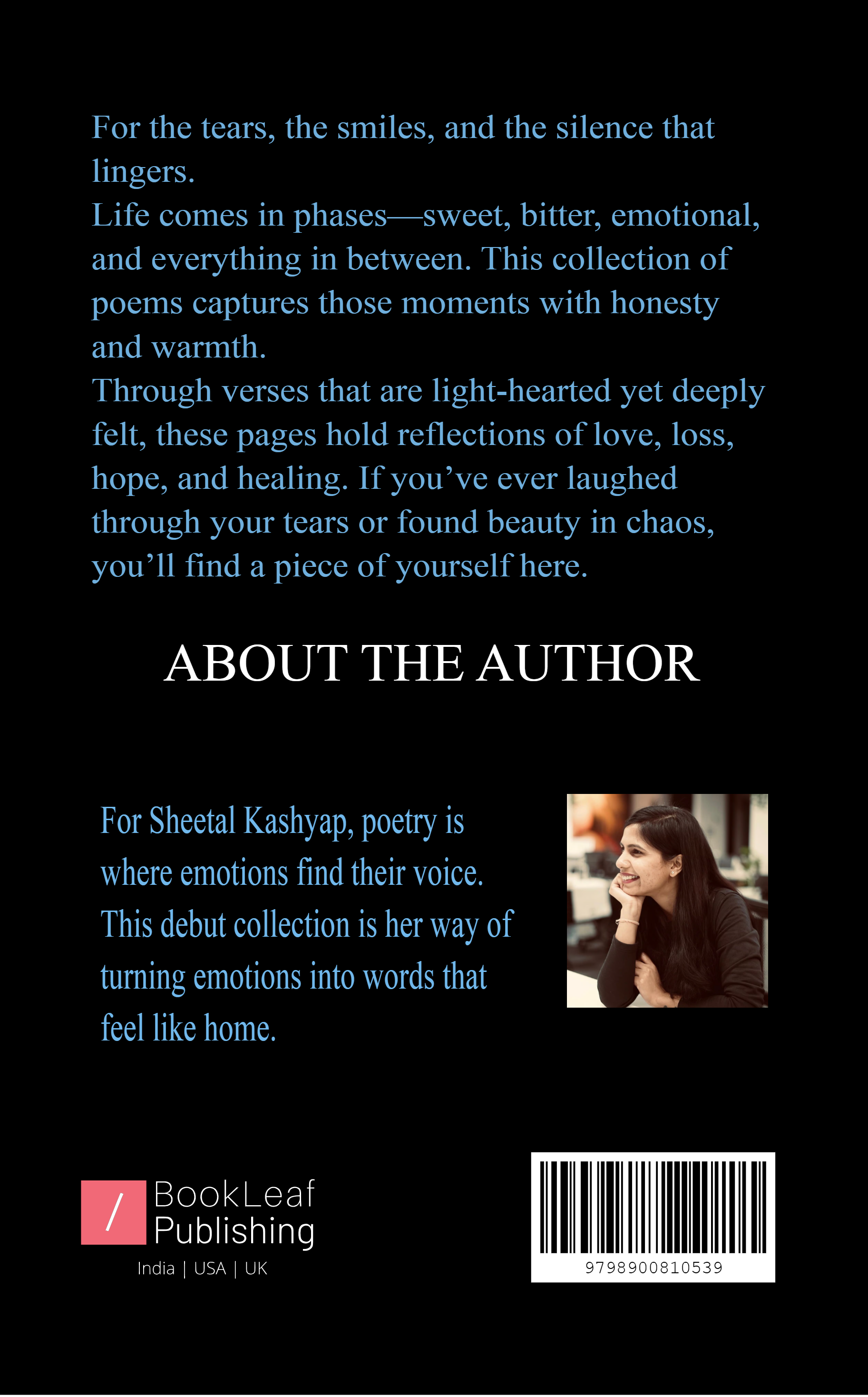 Through simple yet heartfelt verses, these poems give voice to emotions too real to stay silent—love, loss, hope, and healing. This book is an invitation to pause, reflect, and find comfort in knowing that every feeling has its season, and every heart its own rhythm.