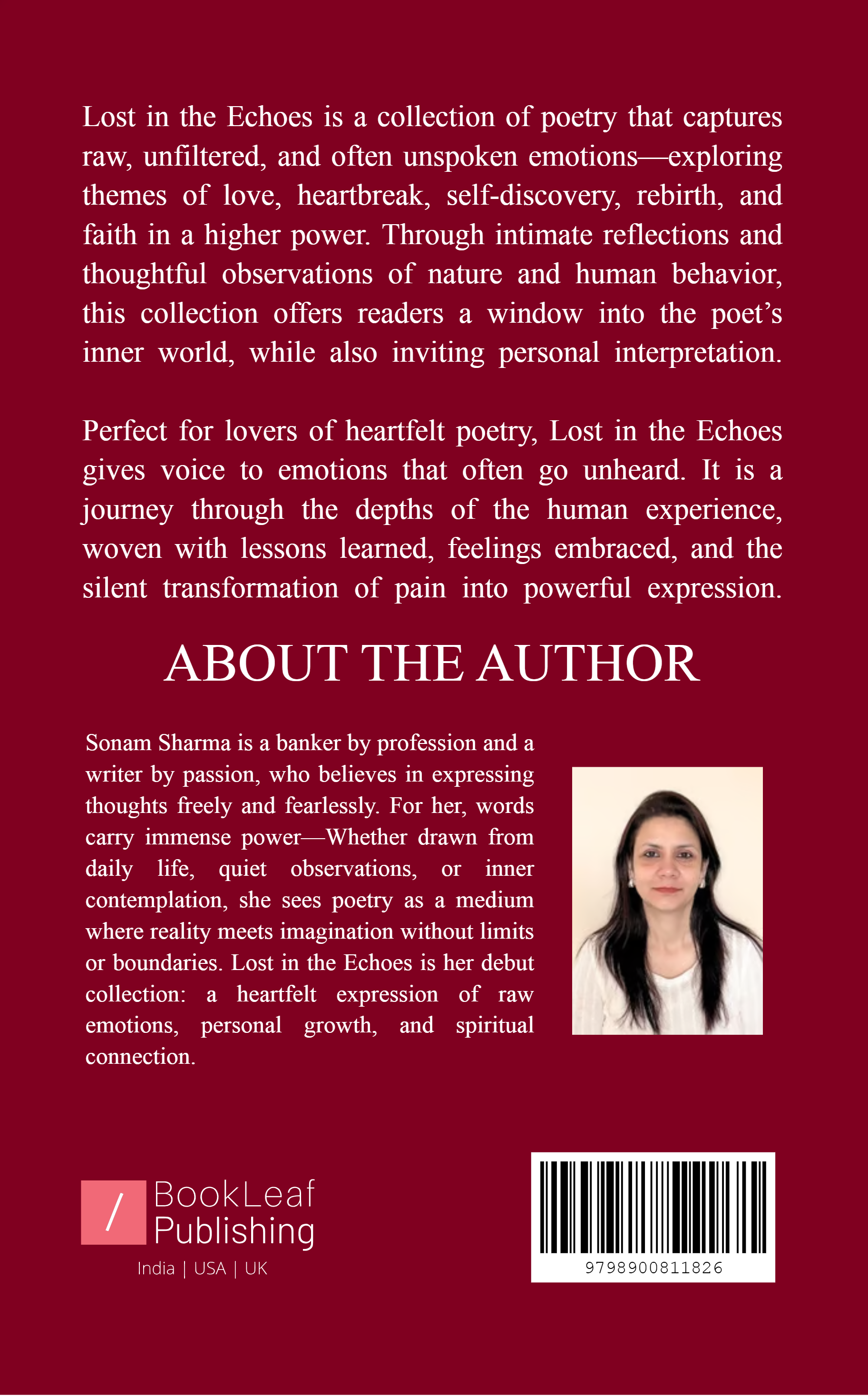 Perfect for lovers of heartfelt poetry, Lost in the Echoes gives voice to emotions that often go unheard. It is a journey through the depths of the human experience, woven with lessons learned, feelings embraced, and the silent transformation of pain into powerful expression.