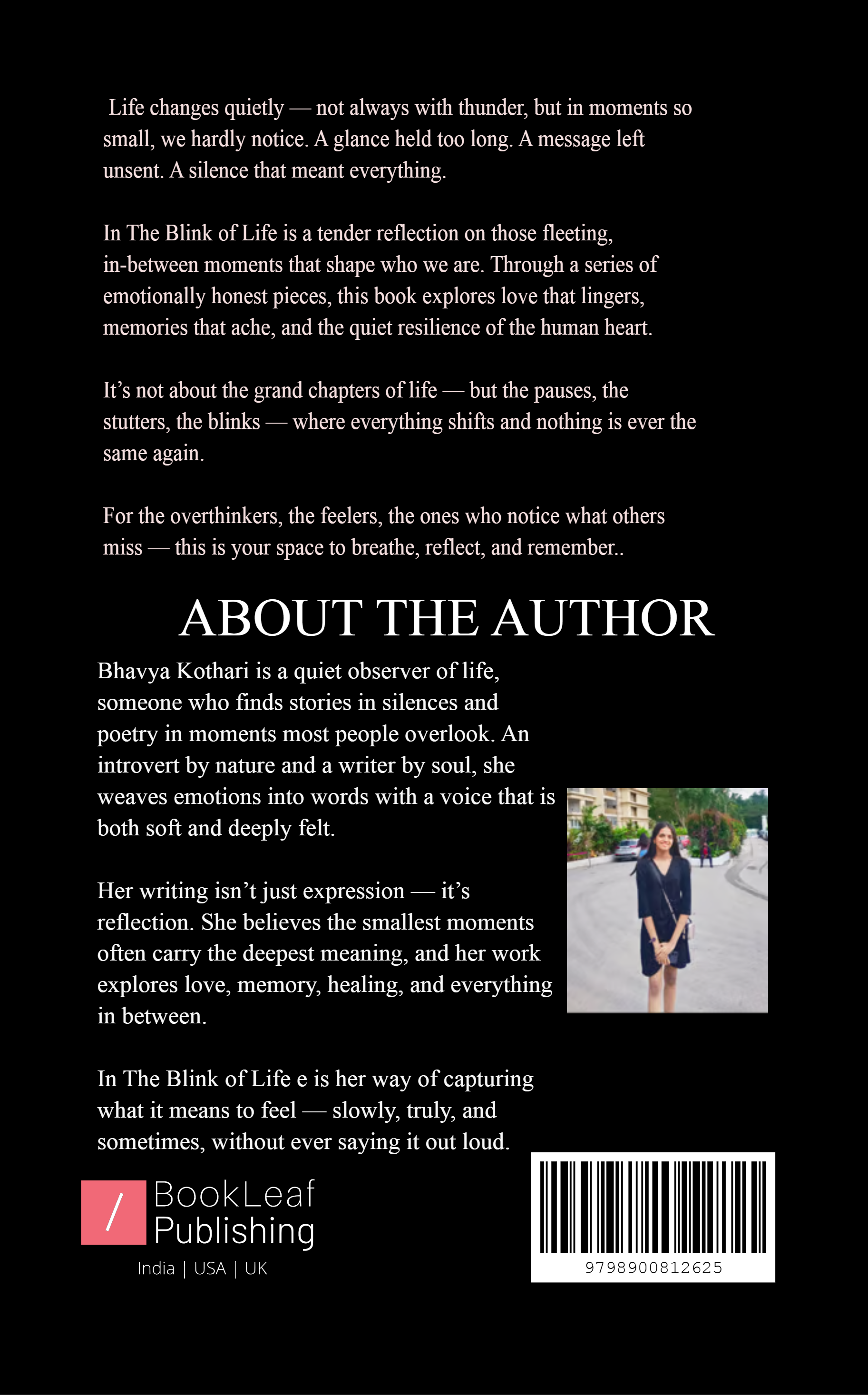 In the Blink of Life is a heartfelt collection of thoughts, memories, and reflections that capture the beauty of life’s in-between moments. Through themes of love, loss, healing, and hope, the book explores how even the smallest experiences can leave the deepest impact.