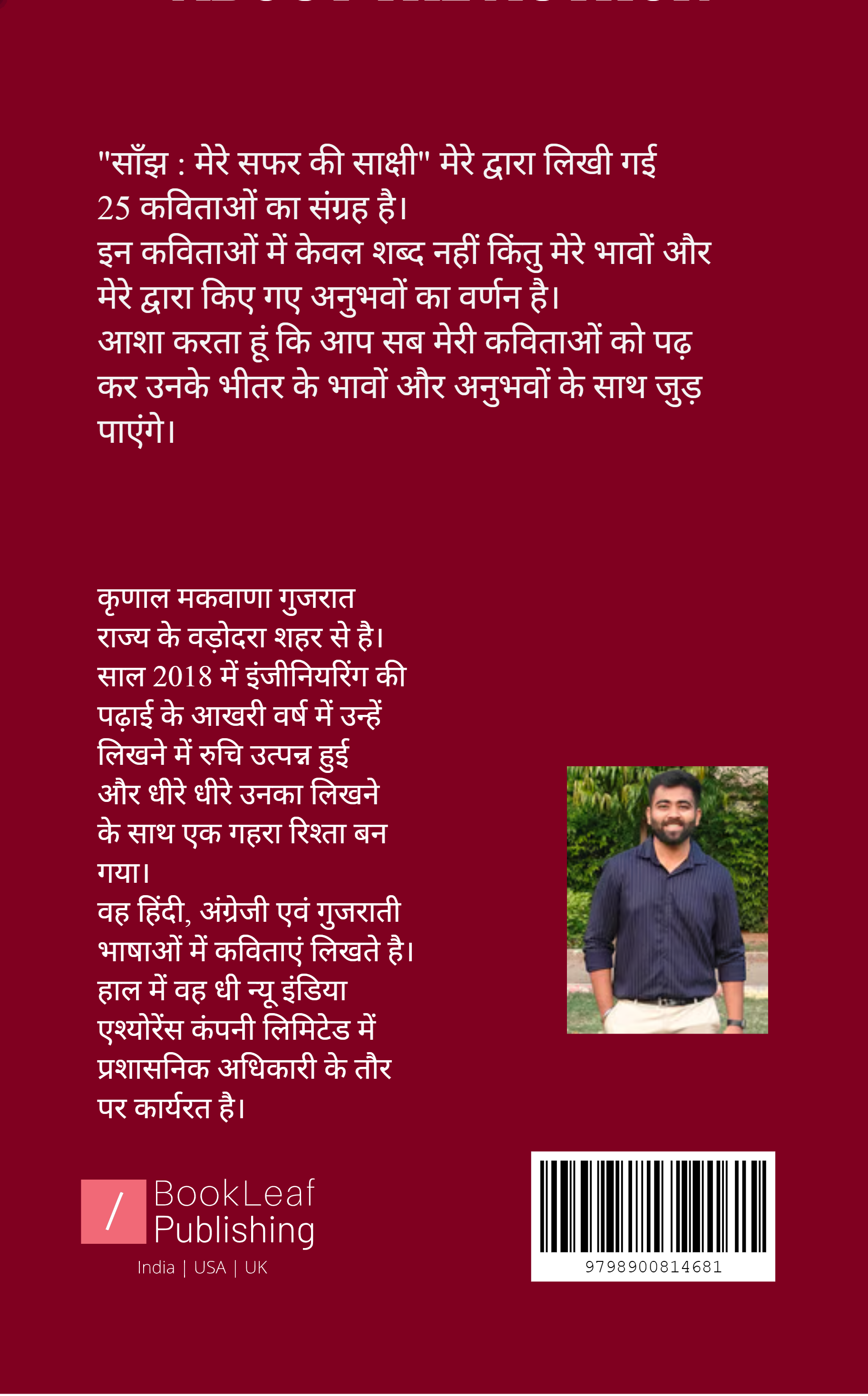 "साँझ : मेरे सफर की साक्षी" मेरे द्वारा लिखी गई 25 कविताओं का संग्रह है। इन कविताओं में केवल शब्द नहीं किंतु मेरे भावों और मेरे द्वारा किए गए अनुभवों का वर्णन है। आशा करता हूं कि आप सब मेरी कविताओं को पढ़ कर उनके भीतर के भावों और अनुभवों के साथ जुड़ पाएंगे।